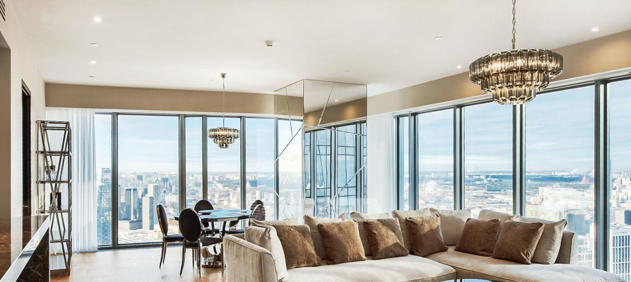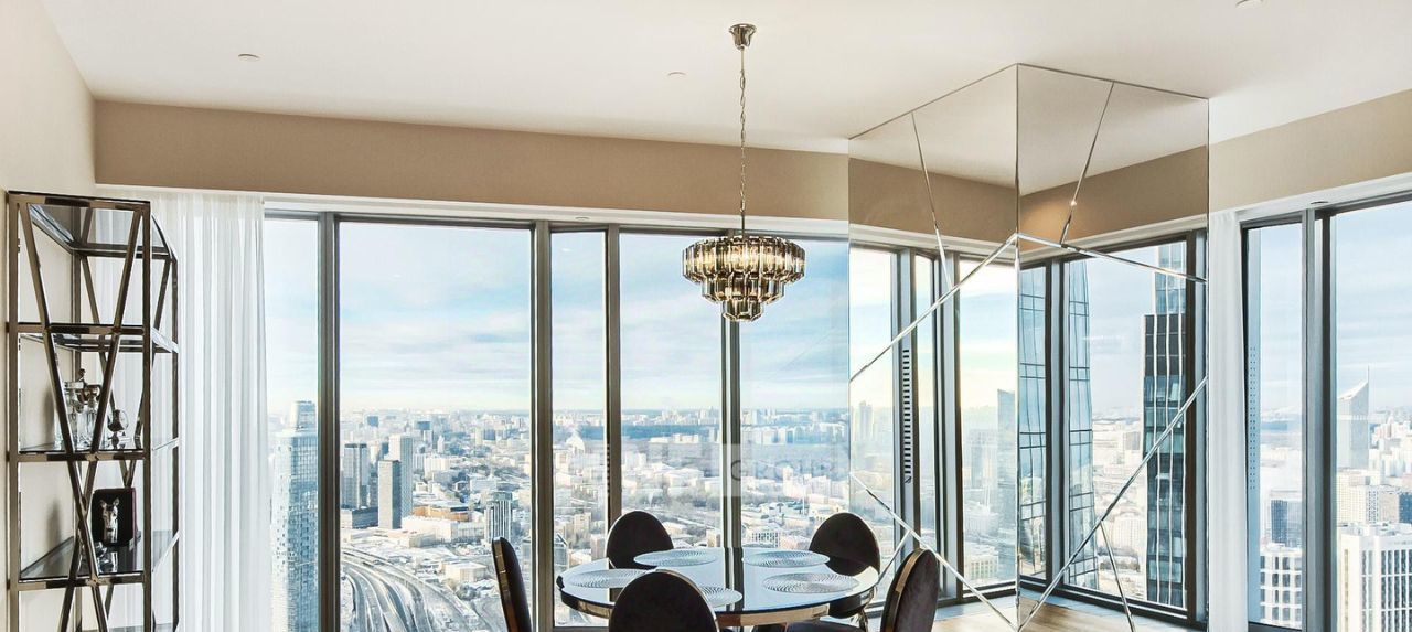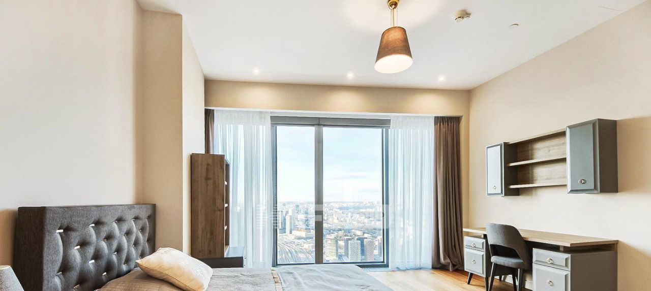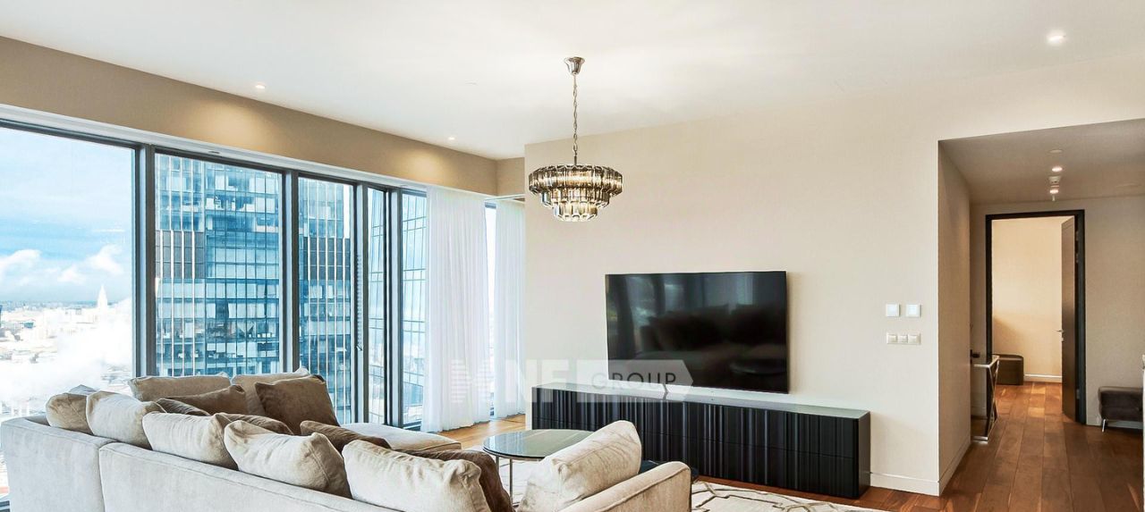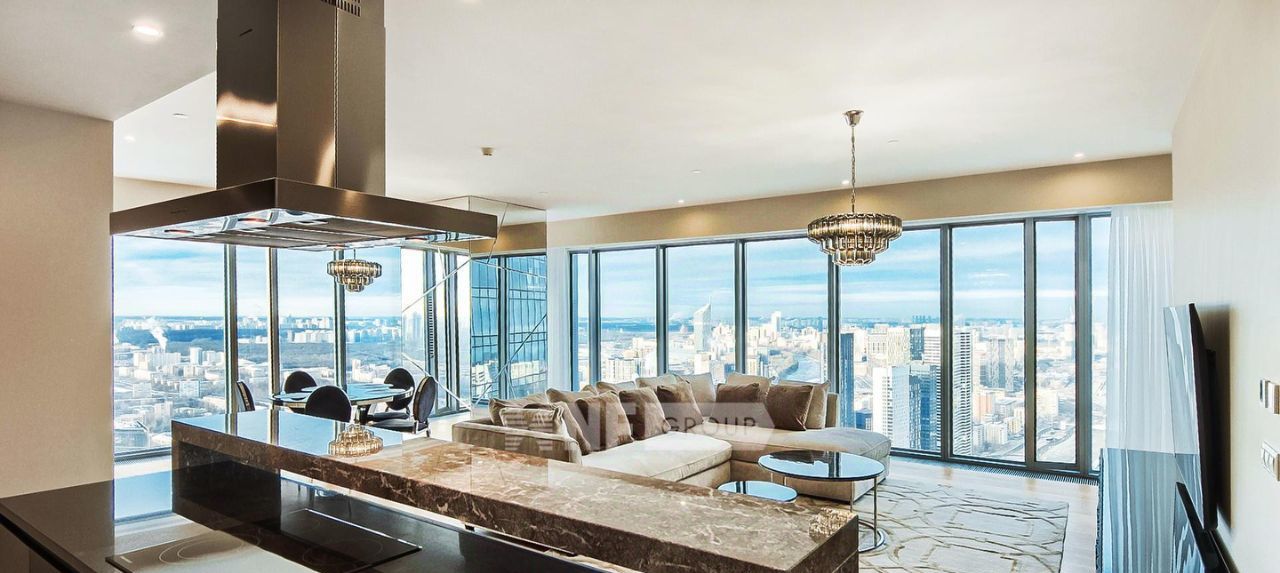 Лот: 101290. Предлагается видовой апартамент с новой дизайнерской отделкой в небоскрёбе "ОКО" в "Москва-Сити". Современная классика, дорогие материалы, мебель и техника премиум-брендов.