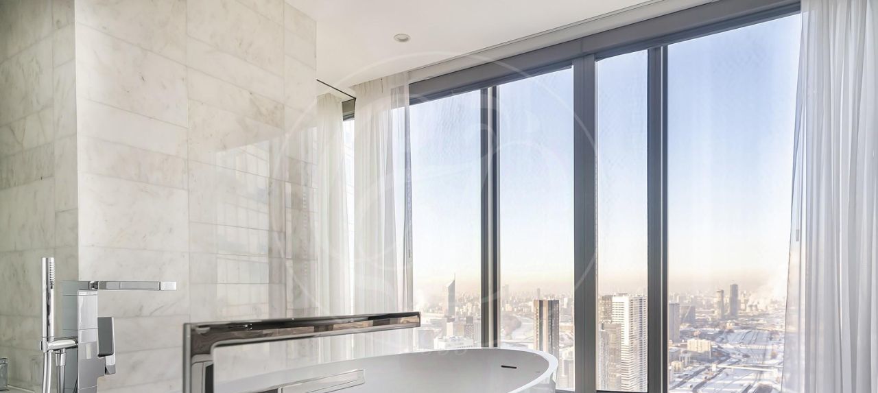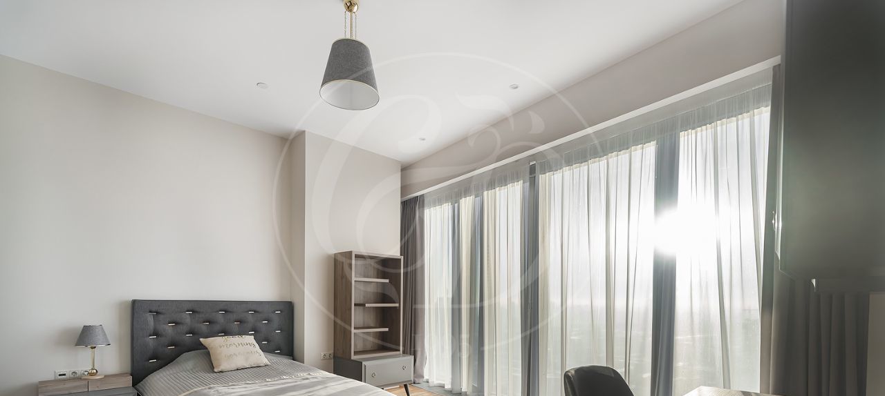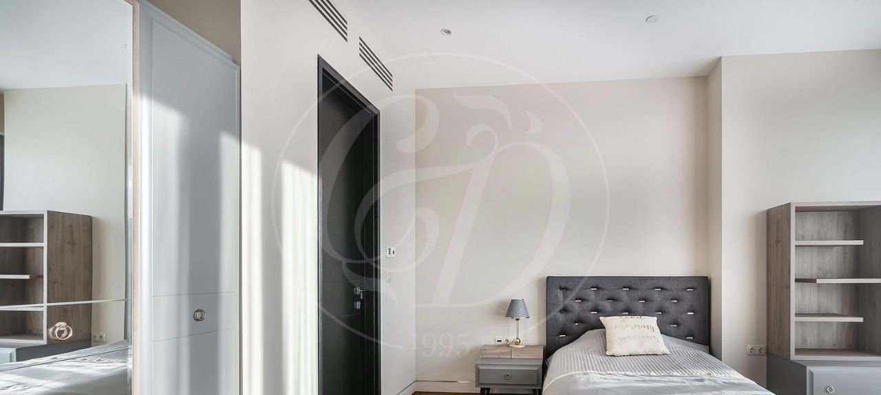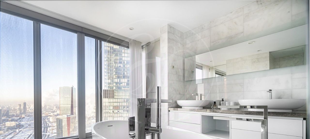 Из окон просторной гостиной открываются завораживающие виды на город. Главная спальная комната с просторной ванной комнатой и гардеробной, гостевая спальная комната с собственным санузлом, гостевой санузел.