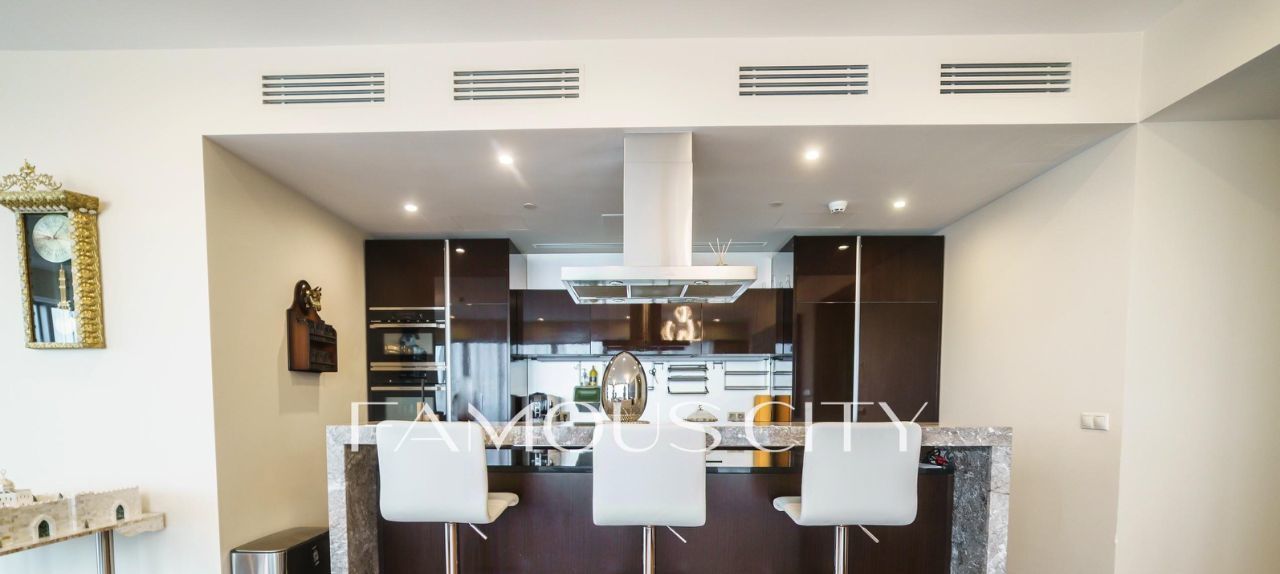 Кухня укомплектована итальянским кухонным гарнитуром и техникой Kuppersbusch.