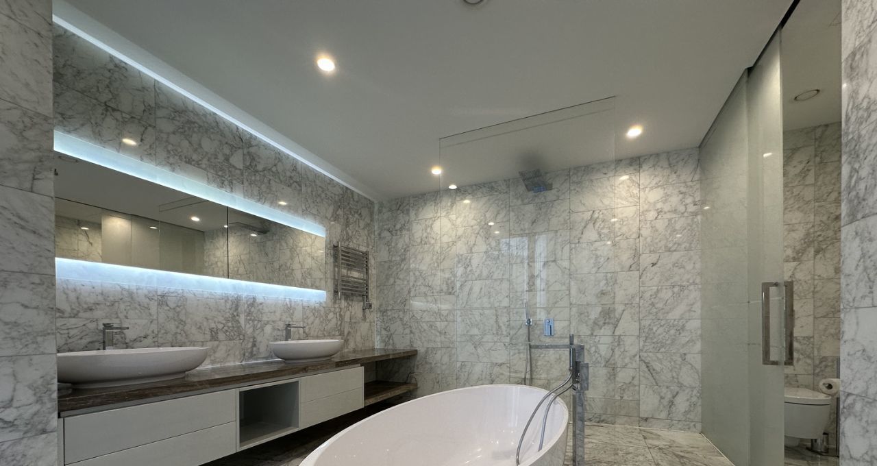 Апартаменты укомплектованы встроенной мебелью и техникой, системами хранения в гардеробных.