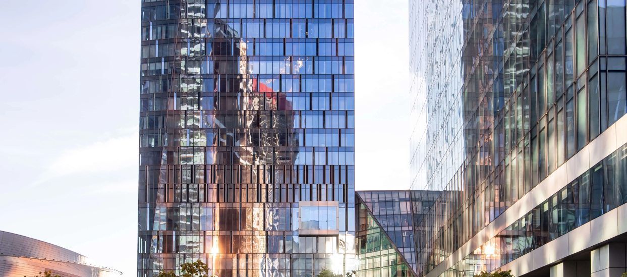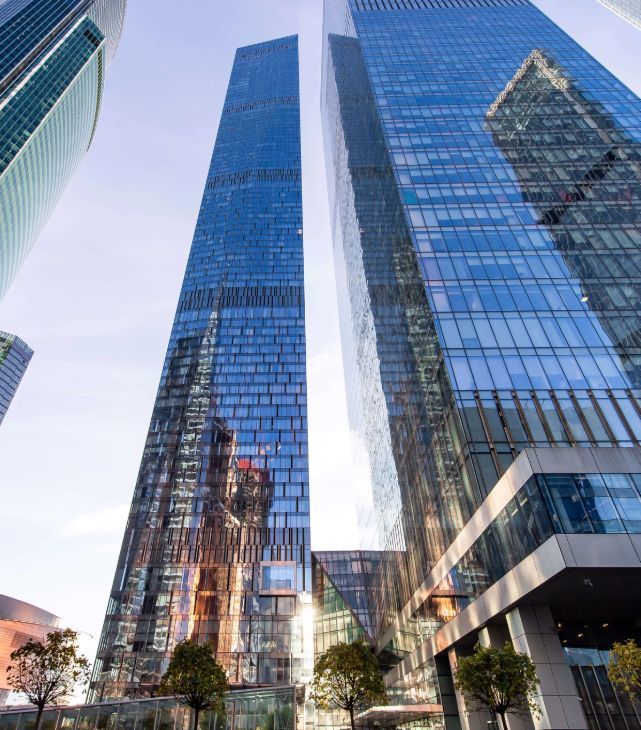 МФК ОКО представляет собой две башни, которые расположены на территории ММДЦ Москва Сити. Башни объединены платформой, по их периметру расположены углубления в форме сот, и вся конструкция выглядит очень необычно и элегантно.