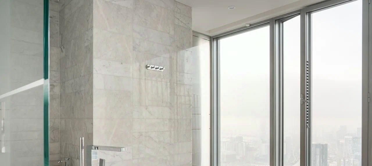 • Мастер-ванна с панорамным видом: Уникальная ванная комната с захватывающим панорамным обзором на Москву, предлагающая непревзойденные моменты релаксации.