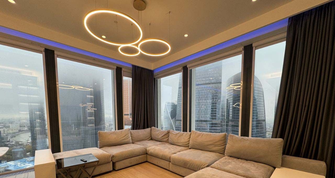 Апартаменты расположены на 43-м этаже в башне Т2.