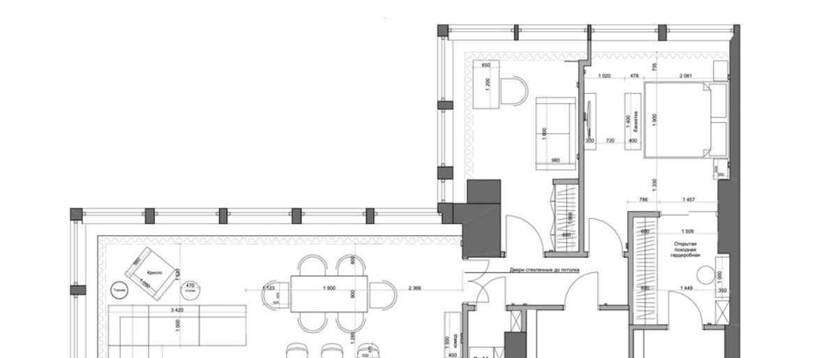 • Просторный угловой зал, совмещенный с кухней