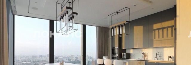 Просторная трехкомнатная квартира в аренду в Москве-Сити, всего в 3 минутах пешком от метро. Площадь квартиры составляет 160 кв. м, из которых 130 кв. м отведены под жилое пространство, а кухня занимает 20 кв. м. Она расположена на 37 этаже современного монолитного дома, построенного в 2020 году. Высокие потолки 3.9 метра и окна, выходящие на улицу, придают квартире ощущение простора и света.