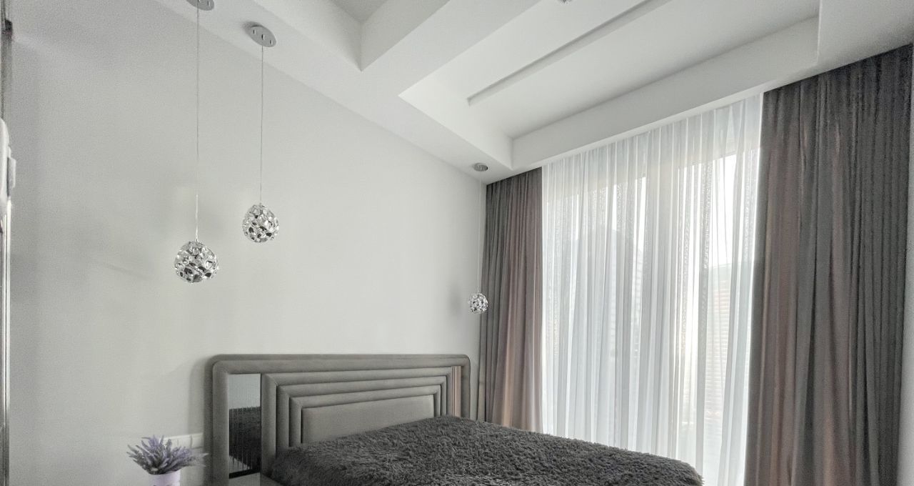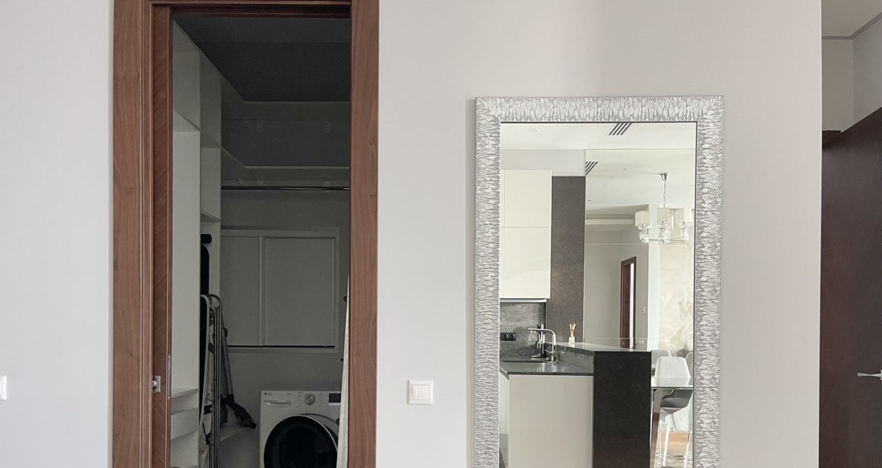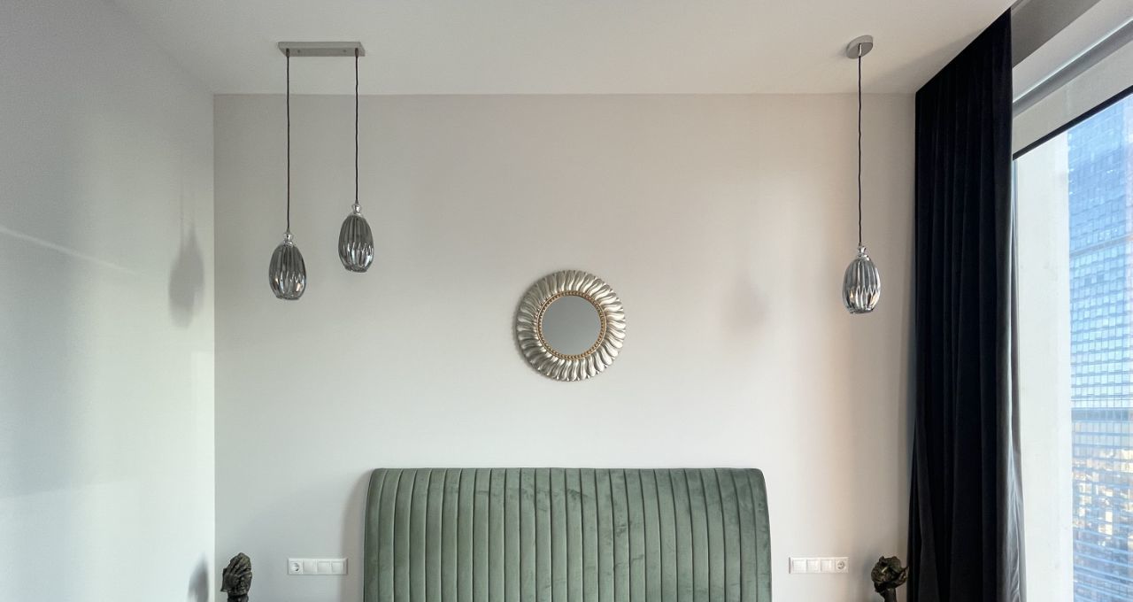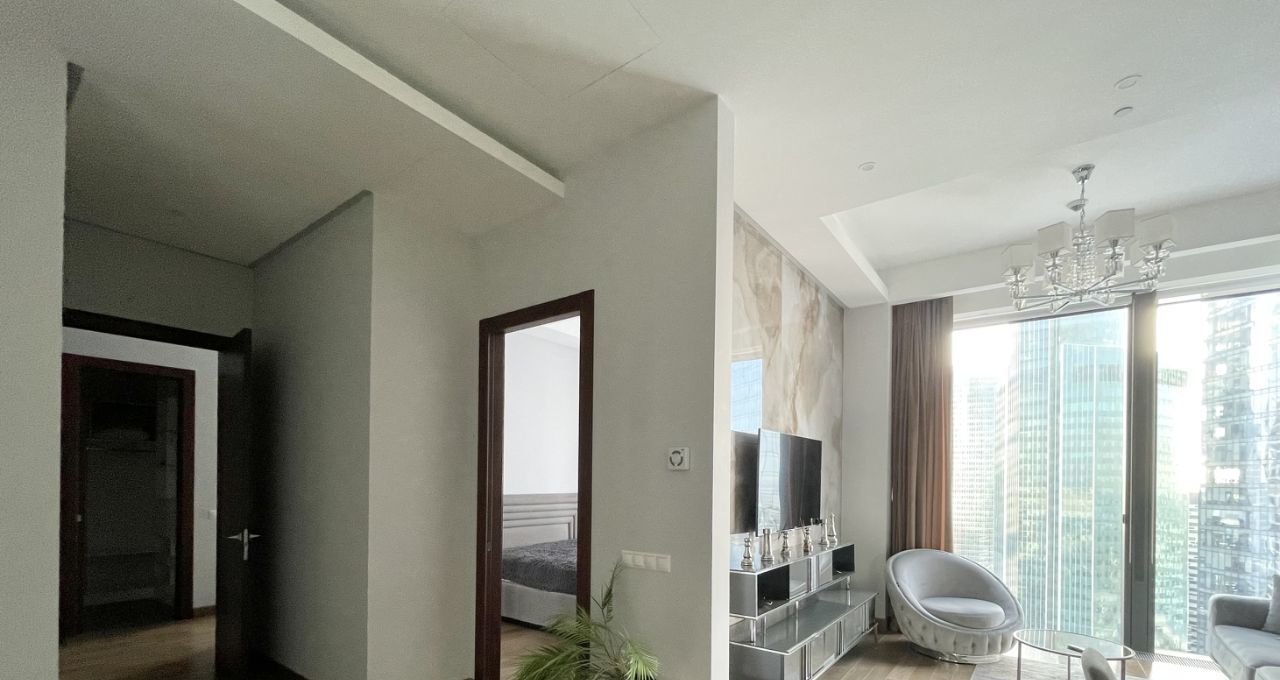 Функциональные апартаменты с современной отделкой, панорамным остеклением, полностью укомплектованы бытовой техникой, мебель под клиента. Планировка: гостиная с кухней, спальня с встроенными гардеробными шкафами, ванная с сантехникой, холл с гардеробными. В ночное время огни небоскребов никого не оставят равнодушными.