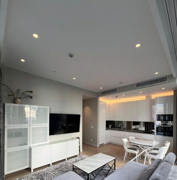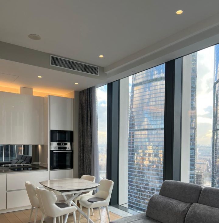 Представляем вашему вниманию просторные апартаменты в сердце Москвы-Сити по адресу: 1-й Красногвардейский проезд, 22с2. Общая площадь составляет 92 кв. м, из них жилая — 80 кв. м, а площадь кухни — 12 кв. м. Апартаменты расположены на 27-м этаже современного монолитного дома 2020 года постройки, всего в здании 78 этажей. Высокие потолки 3.9 метра создают ощущение простора и свободы.