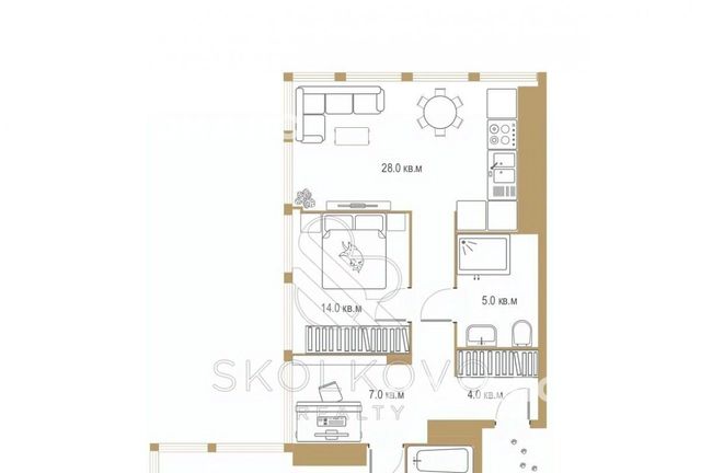 Погружаясь в пространство, вы ощутите гармонию светлых тонов и качественных отделочных материалов. Просторная гостиная (28 кв. м), объединённая с кухонной зоной, идеально подходит для отдыха и приёмов гостей.