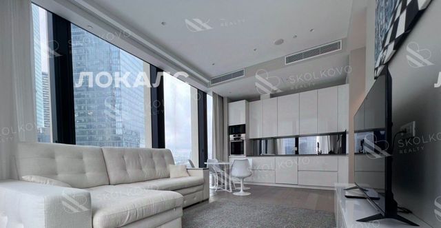 Эти элегантные апартаменты с дизайнерским ремонтом открывают захватывающие виды на башни "Москва-Сити" и панораму города благодаря панорамным окнам с ориентировкой на юг и восток.