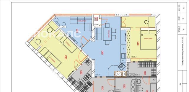 Вторая спальня с гардеробной (19+5 кв.м) не меблирована.