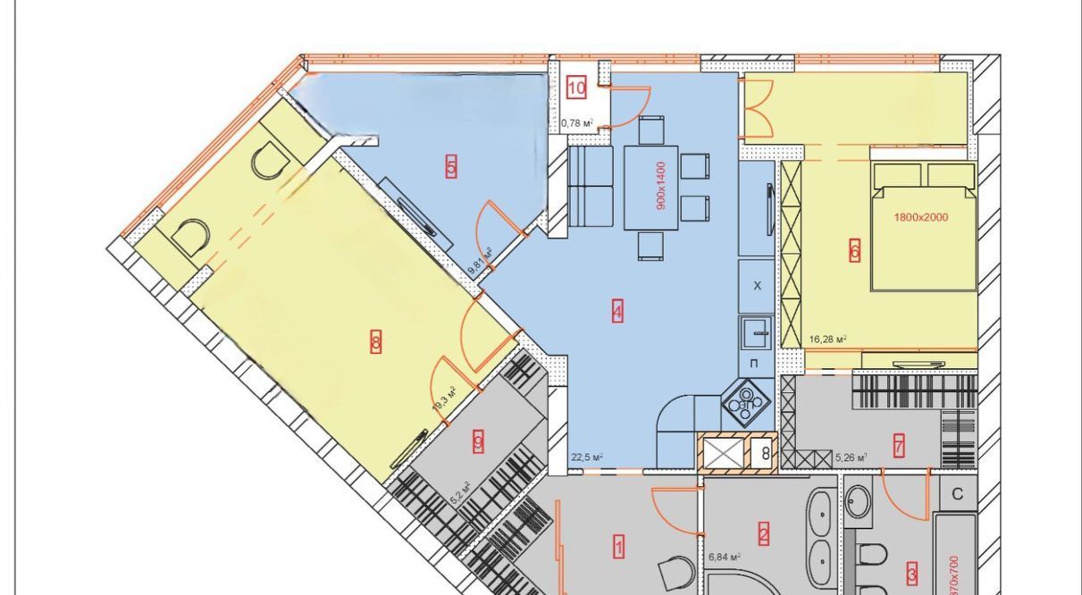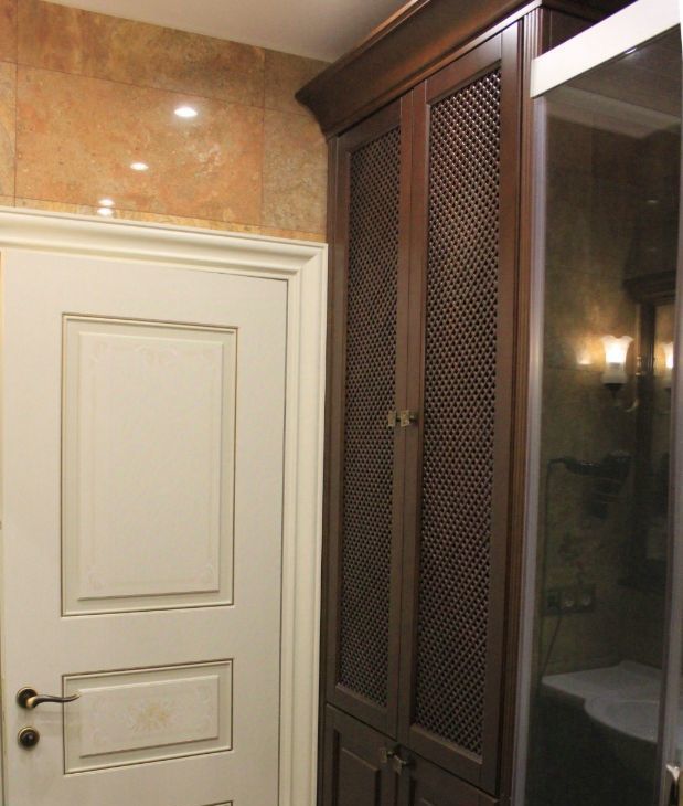 Приватный комплекс Родительский включает в себя меблированную спальню с гардеробной (16+5 кв.м) и ванную комнату (6 кв.м) с мебелью, биде и душевым боксом-сауной на двух человек.