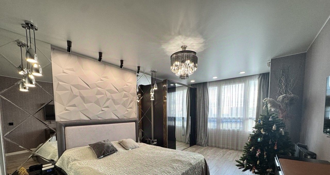 Продуманная планировка: просторная кухнягостиная, две изолированные комнаты , большие окна, много света и воздуха. Из окон открывается эффектный городской пейзаж — особенно красиво вечером, когда зажигаются огни.