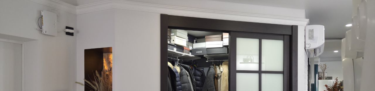 В квартире продумано хранение: есть тёмная комнатапостирочная для бытовой техники и хранения вещей, а также гардеробная при входе и отдельная гардеробная в спальне.