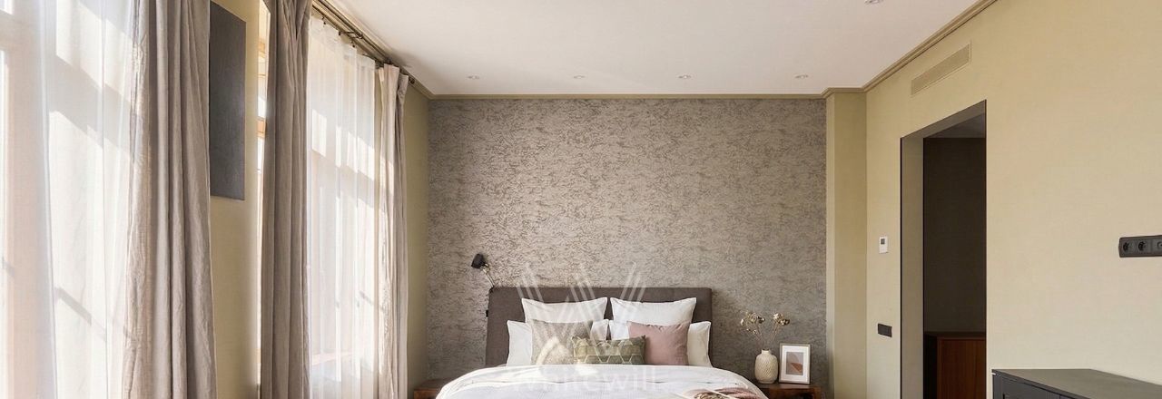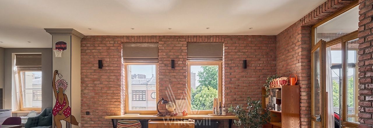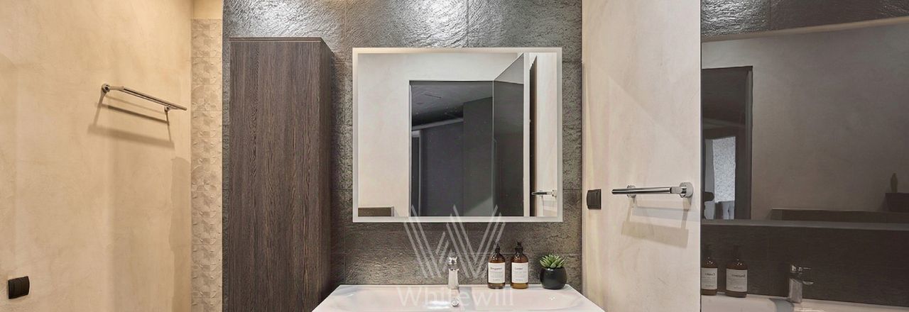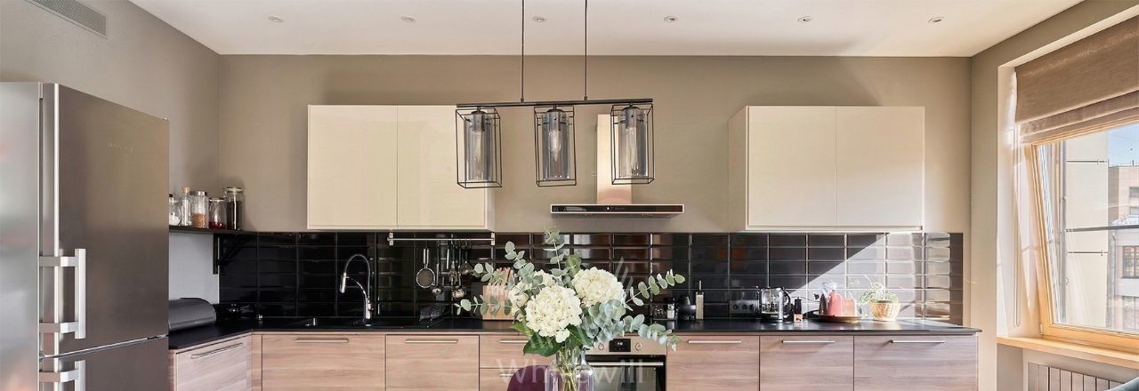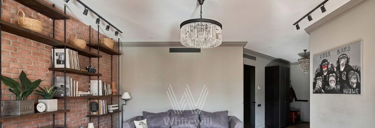 показы возможна сейчас, свободна с 1 мая. Квартира с 1 спальней с дизайнерским ремонтом общей площадью 109 м² в комплексе бизнес-класса "Люмьер". Выполнен ремонт в современном стиле с элементами лофта. В отделке гармонично сочетаются выразительная кладка из красного кирпича, фактура дерева и гладкие стены в серо-бежевой гамме. Дополняют интерьер роспись стен, постеры и предметы декора. Лаконичная хрустальная люстра, трековые системы и точечные светильники создают разнообразные световые сценарии.