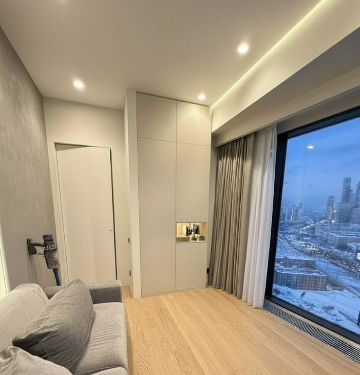 Видовая дизайнерская квартира в престижном районе Москвы. Кухня-гостиная, мастер-спальня со своей ванной комнатой, кабинет (комната свободного назначения), 2 полноценных с/у. Выполнена премиальная дизайнерская отделка, с использованием натуральных материалов, интерьер оформлен в современном стиле.