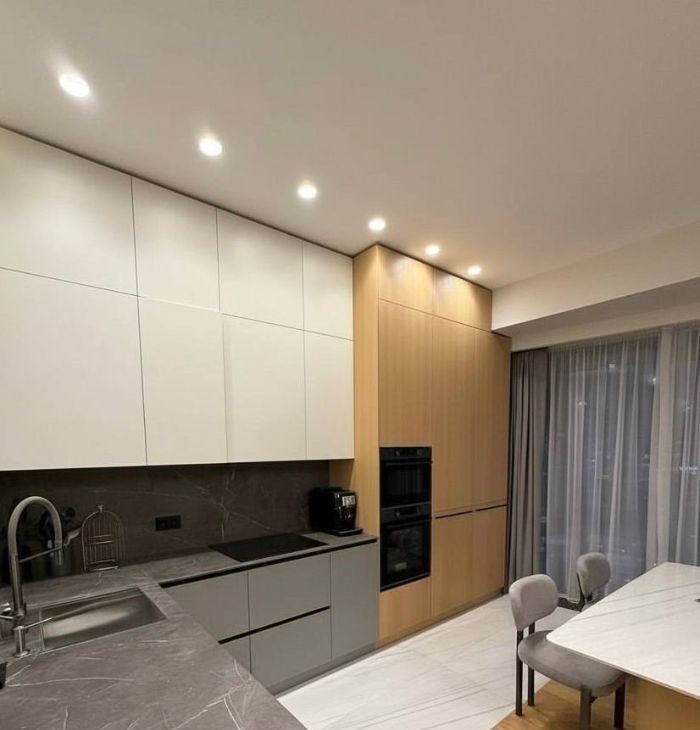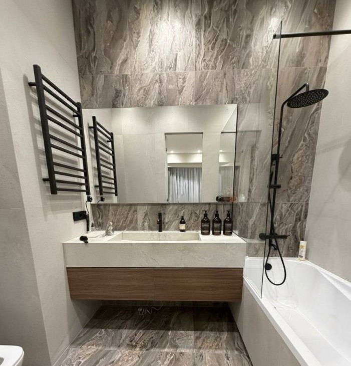 Видовая дизайнерская квартира в престижном районе Москвы. Кухня-гостиная, мастер-спальня со своей ванной комнатой, кабинет (комната свободного назначения), 2 полноценных с/у. Выполнена премиальная дизайнерская отделка, с использованием натуральных материалов, интерьер оформлен в современном стиле.