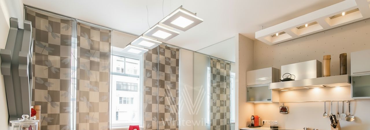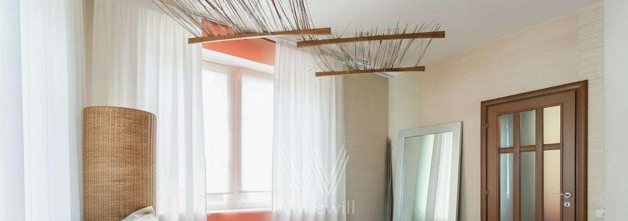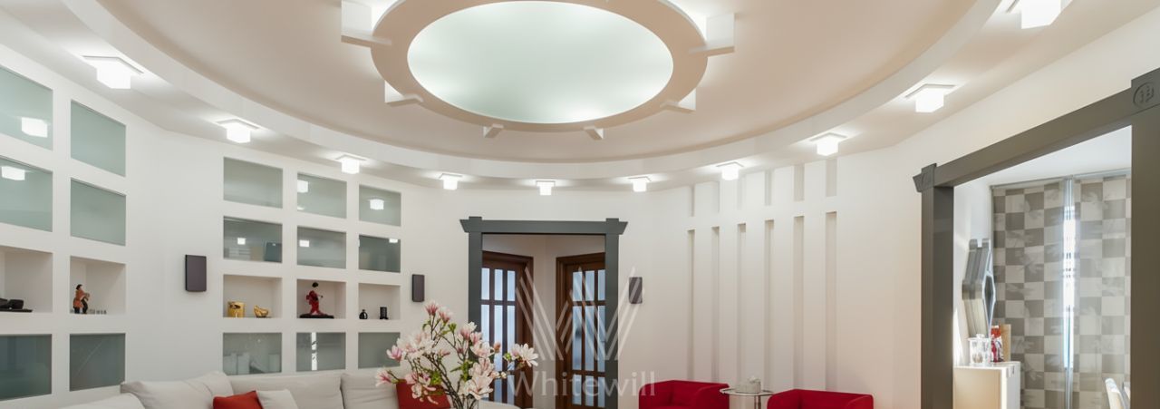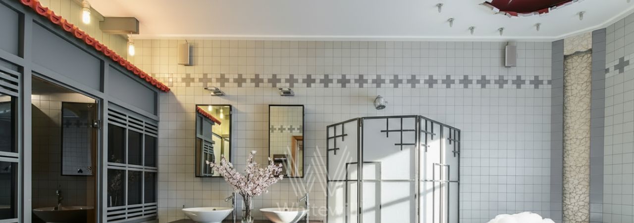 Выполнен ремонт в уникальном авторском стиле. Просторная кухня 20 м² совмещена с гостиной. Квартира с потолками 3 метра полностью меблирована и оборудована бытовой техникой — посудомоечная машина, холодильник, кондиционер, бойлер, телевизор, проведен высокоскоростной интернет. В санузлах установлены сауна с джакузи, душевая кабина, ванна, стиральная машина, подогрев полов. Окна квартиры выходят в тихий двор.