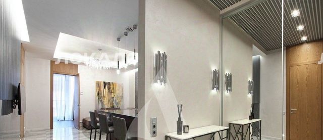 Трехкомнатная квартира в клубном доме Smolensky De Luxe. Общая площадь квартиры 92 кв. м. В квартире выполнена качественная дизайнерская отделка, с применением дорогих натуральных материалов. Планировка: общая зона кухни-столовой-гостиной, две спальни, два санузла, две гардеробные. Лоджия. Квартира полностью меблирована о оснащена всей необходимой бытовой техникой. Мебель и техника от ведущих европейских производителей. В квартире установлена система тёплых полов. Вид из окон на церковь.