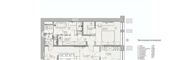 3-к кв. Москва 1-й Смоленский пер., 21 (92.3 м²)