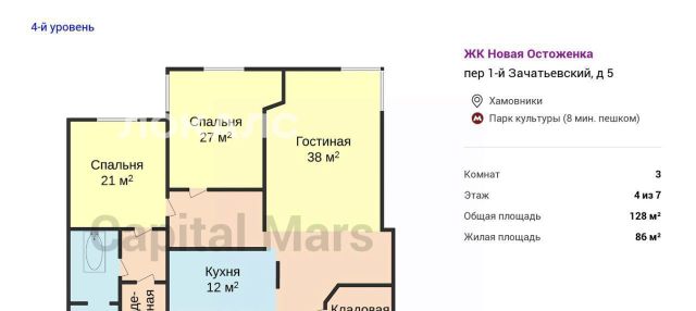 3-к кв. Москва 1-й Зачатьевский пер., 5 (128.0 м²)