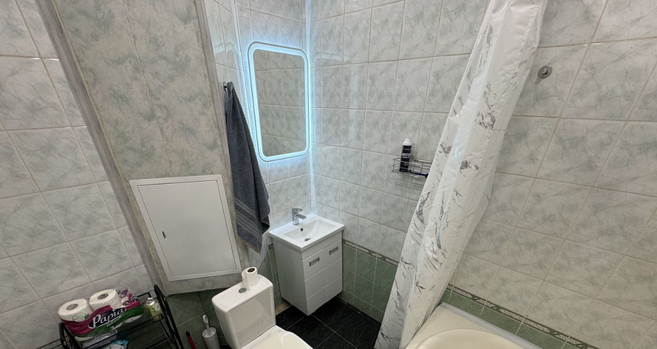 Санузел совмещен оборудован качественной сантехникой (ванна).