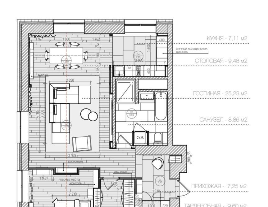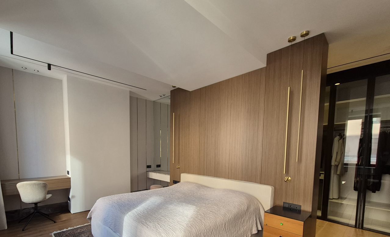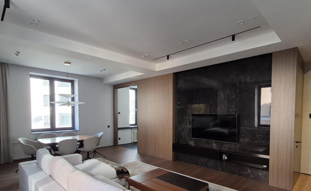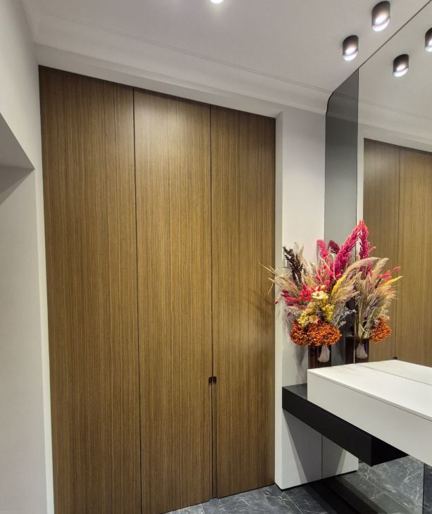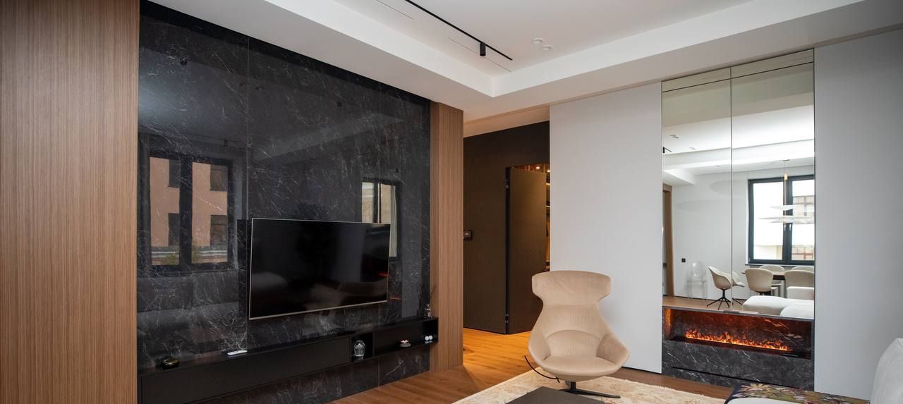 с использованием натурального дерева, камня и премиальных отделочных материалов. Пространство создаёт атмосферу современного европейского жилья уровня boutique hotel.
