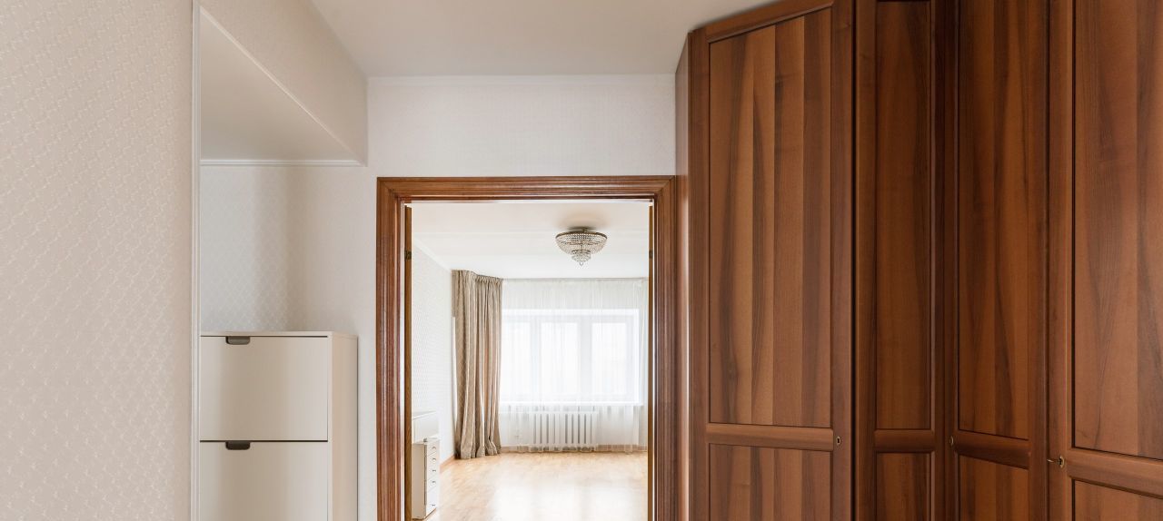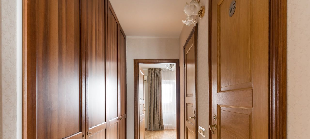 Второй коридор также оснащен встроенными вместительными шкафами. Мест для хранения много.