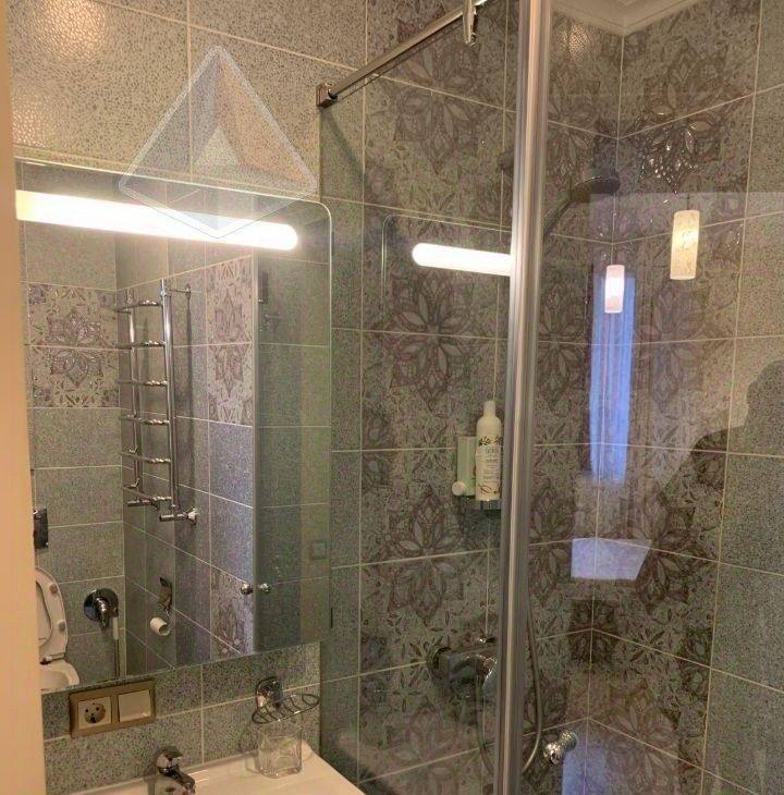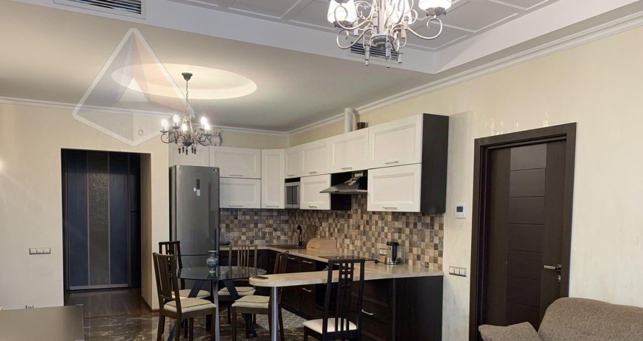 Внутри предусмотрено всё необходимое для комфортного проживания всей семьи. Планировка включает две отдельные спальни и современную кухню, совмещенную с гостиной. Квартира полностью меблирована, есть богатая библиотека для любителей чтения. Техника новая и исправная: два кондиционера, холодильник, посудомоечная и стиральная машины, телевизор. Для удобства хозяев оборудованы два совмещенных санузла — один с ванной, второй с душевой кабиной. Также имеется просторная лоджия.