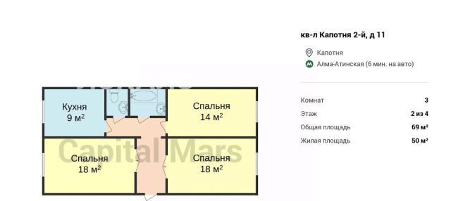 3-к кв. Москва 2-й кв-л, 11 (69.0 м²)