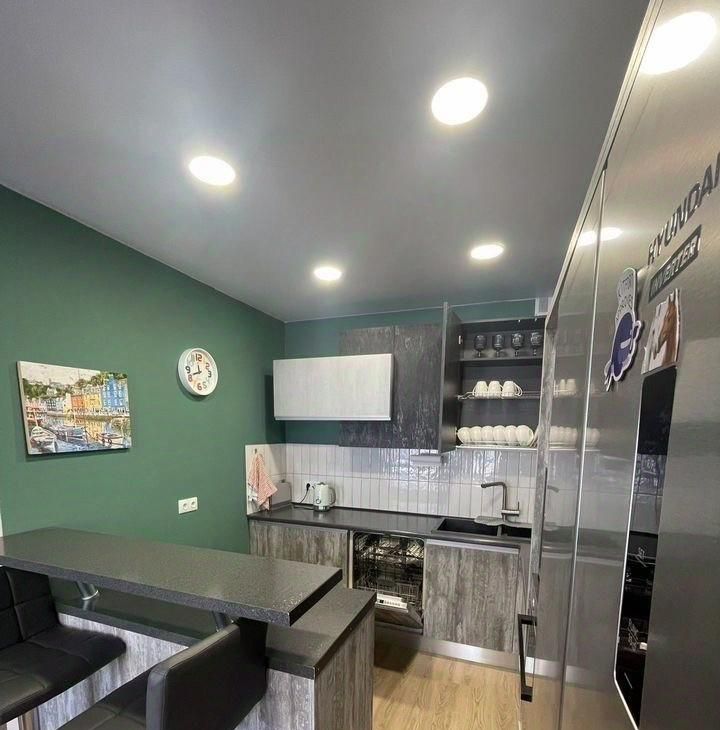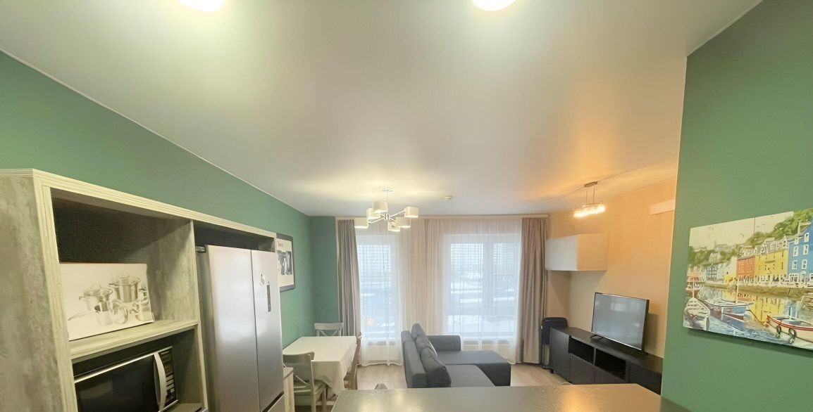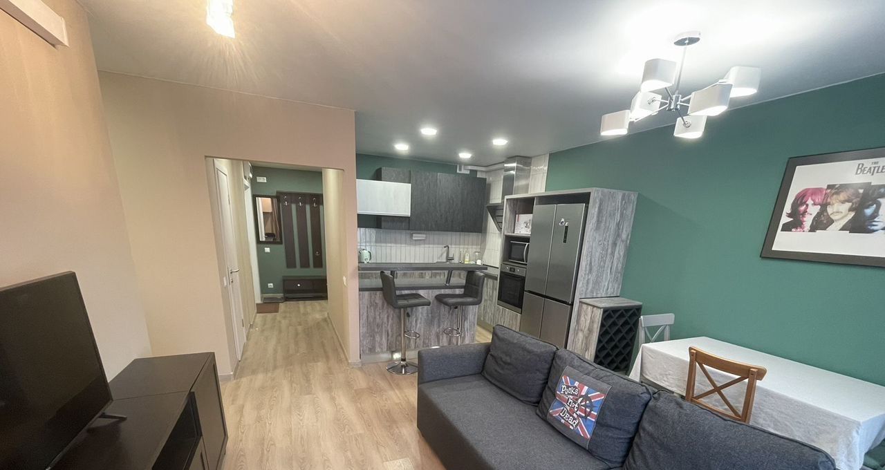 +КУXHЯ-ГОСTИHAЯ плoщaдью 24 м², кухoнный гapнитур oснaщен вcей необходимой бытовой техникой, включая холодильник, варочную панель, вытяжку, духовку, микроволновку, посудомоечную машину, фильтр для воды, чайник, а также новые наборы посуды и кухонной утвари; в гостиной предусмотрен удобный раскладной диван и тв-зона с телевизором;