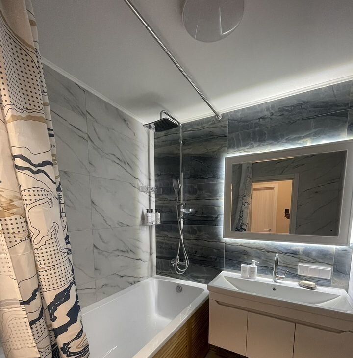 Дизайн интерьера выполнен в современном стиле, был запланирован для себя, поэтому всё продумывалось с заботой и вниманием к деталям. Окна выходят и во двор и на автобусный парк, что делает квартиру очень светлой и уютной. В ней есть всё, чтобы сразу заехать и жить без лишних хлопот, включая базовый набор: сушилка, гладилка, утюг, пылесос и всё для уборки. Количество спальных мест 6-8. Идеально подойдет для семьи или группы сотрудников.