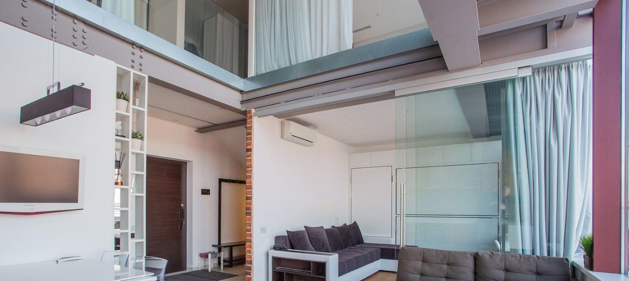 Очень круто спланированный пентхаус. На втором этаже апартамента приватное пространство со спальней, большой гардеробной, уютной рабочей зоной. Уникальное преимущество - большая ванная с панорамным видом на город и Москва-реку. На первом этаже гостиная, кухня-столовая со вторым светом, санузел, гардеробная. Высота потолка более 6 метров, что позволило сделать на первом этаже потолки 3,1 м. Дизайнерский ремонт в стиле лофт. Пол - брашированный дуб. Раковины - камень. Полный комплект дорогой техники на кухне (очистка воды - цептер, холодильник - LIEBHERR, индукция Neff). Балкон. Много систем хранения, плюс есть возможность за отдельную плату приобрести кладовую. ЖК бизнес-класса "Riverdeil" - лобби с охраной, огороженная охраняемая территория, респектабельные соседи. Есть охраняемая наземная парковка. Можно арендовать машиноместо в подземном паркинге. Для прогулок - набережная. Прямой короткий выезд на ТТК. Поблизости ст.м. Павелецкая и Тульская.