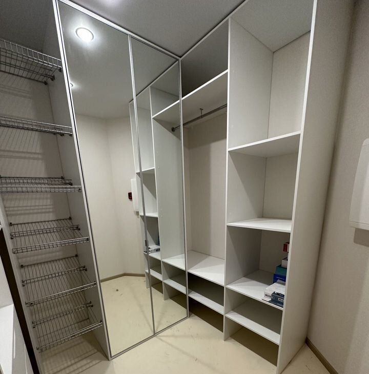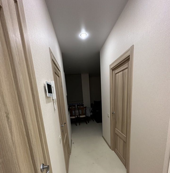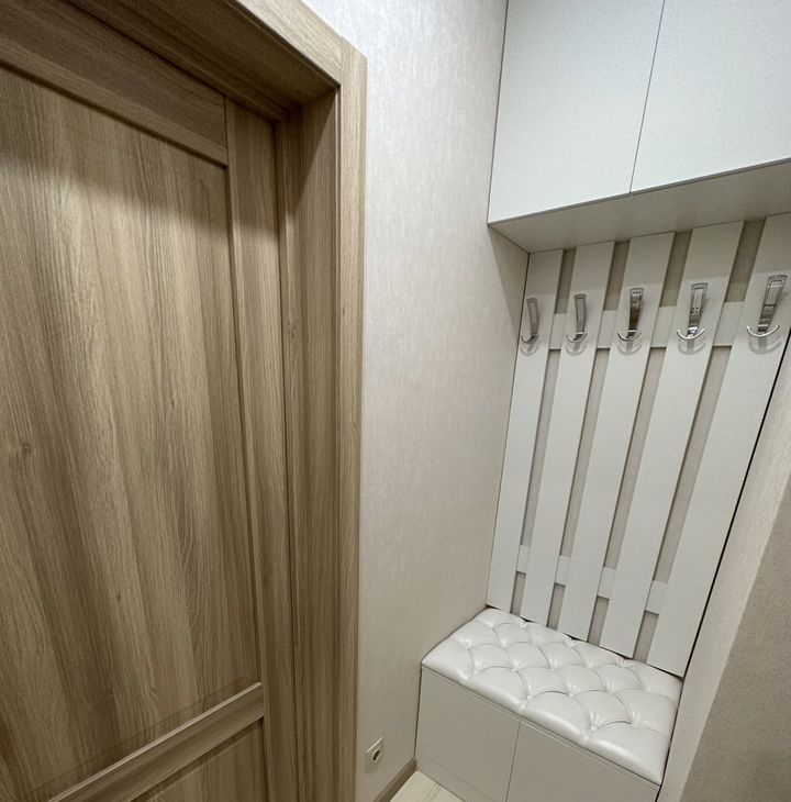 Есть маленький коридорчик, чтобы оставить грязную обувь и верхнюю одежду за пределами квартиры. В квартире есть большая гардеробная комната в большом коридоре.