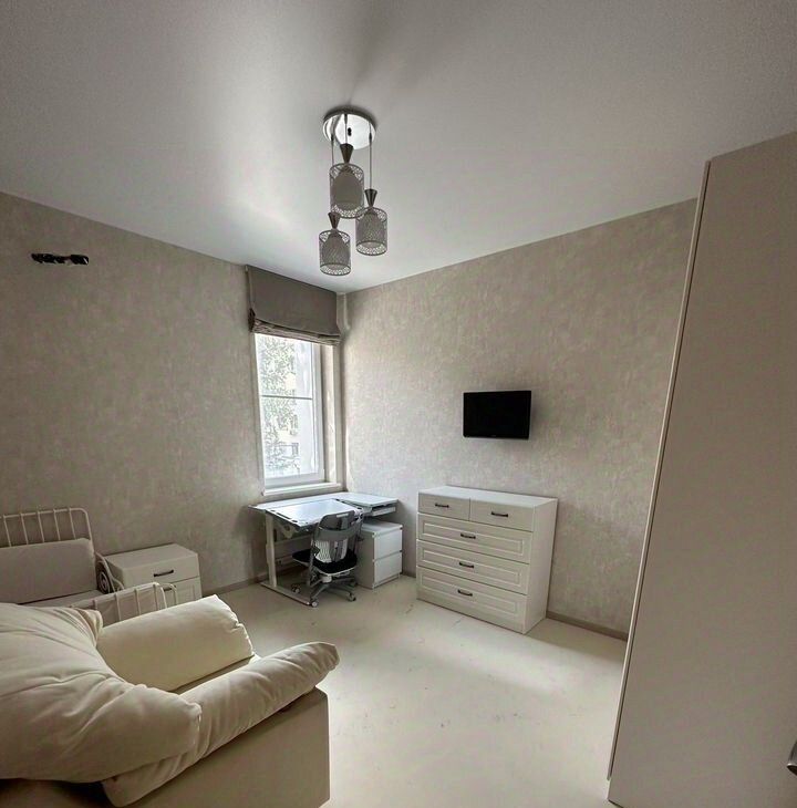 Большая просторная спальная со столом для компьютера/ноутбука, со своей большой, вместительной гардеробной комнатой. Вторая комната - предполагается быть детской. можно сделать кабинет.
