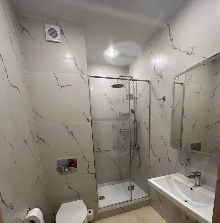 Два Водонагревателя для 10 дней один раз в год при отключении горячей воды. Функциональная со всеми удобными шкафчиками кухня совмещенная с гостиной. Раздвижной стол, 6 стульев, вся новая техника - большая посудомоечная машина, холодильник, микроволновая печь, духовка.