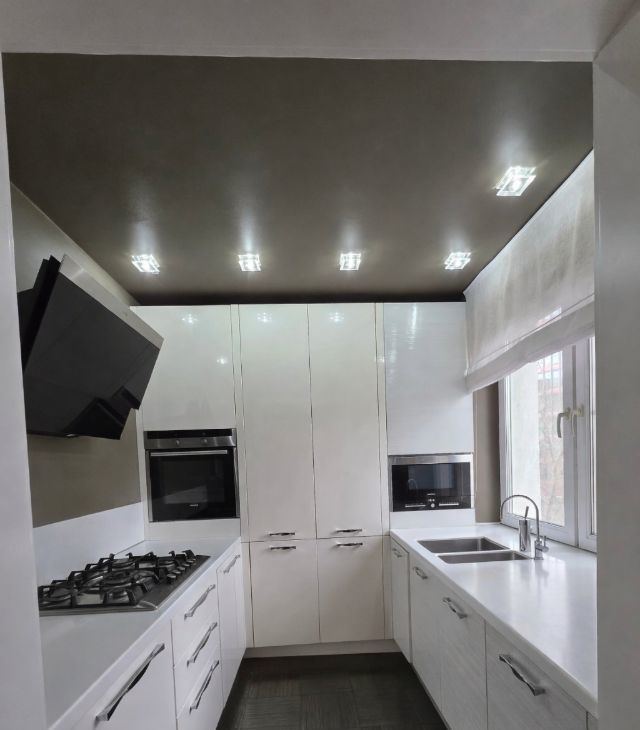 Кухня: итальянский кухонный гарнитур, мойка перенесена к окну (очень светлая рабочая зона). Встроенная техника: посудомоечная машина, духовой шкаф и газовая плита Bosch, микроволновая печь Siemens.