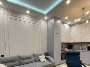 Квартира выполнена в дизайнерском стиле и полностью готова к проживанию. В каждой комнате установлена необходимая мебель, а на кухне уютно и комфортно благодаря современному оснащению. Вам не придется заботиться о бытовой технике — в квартире уже есть кондиционер, холодильник, посудомоечная и стиральная машины, а также телевизор. Два отдельных санузла обеспечат удобство для всей семьи, а в ванной комнате установлена полноценная ванна.