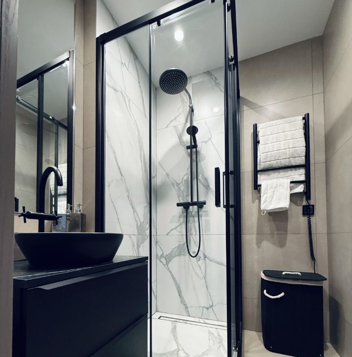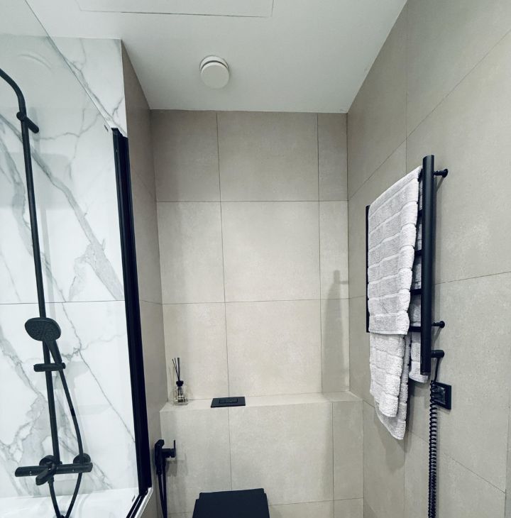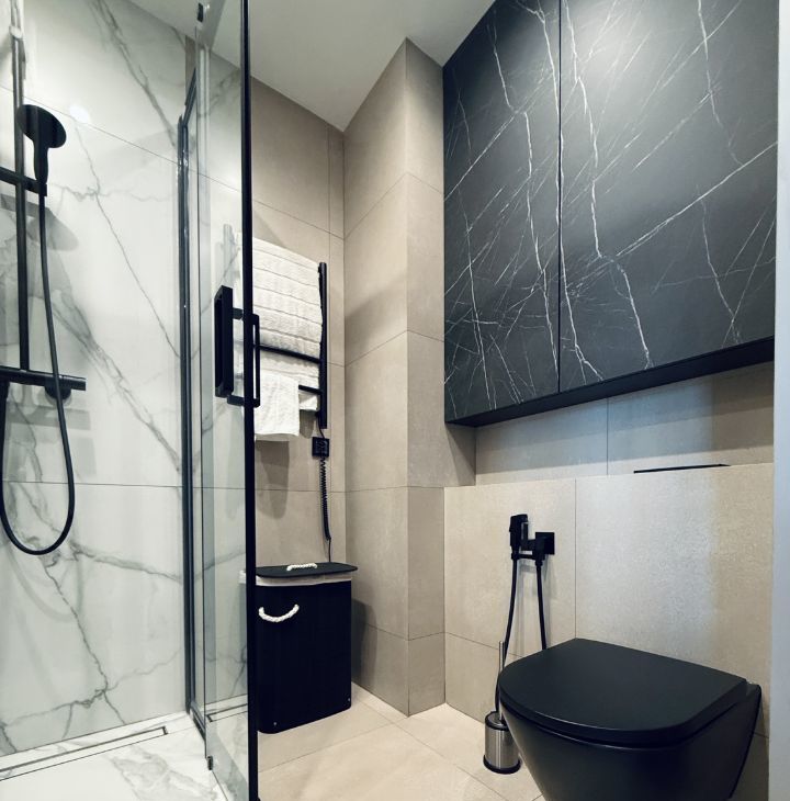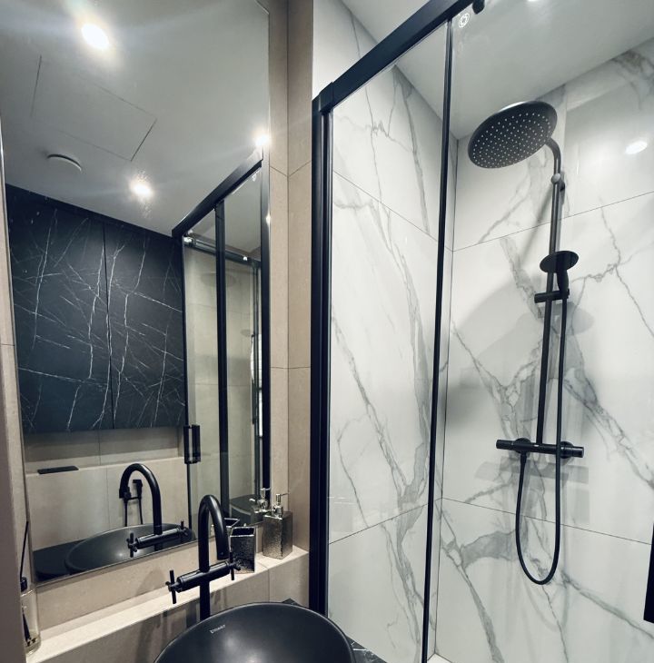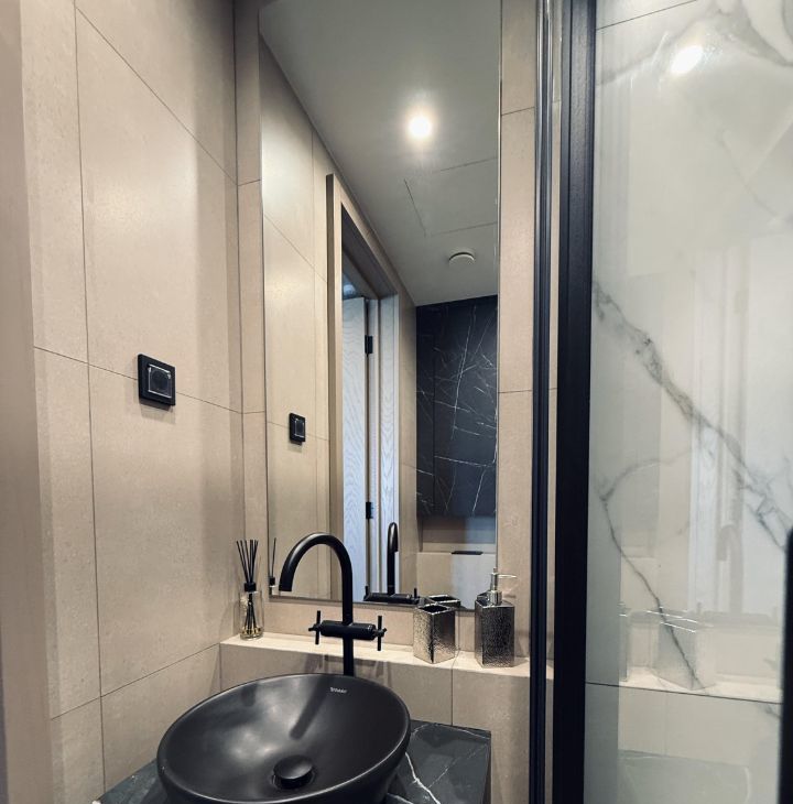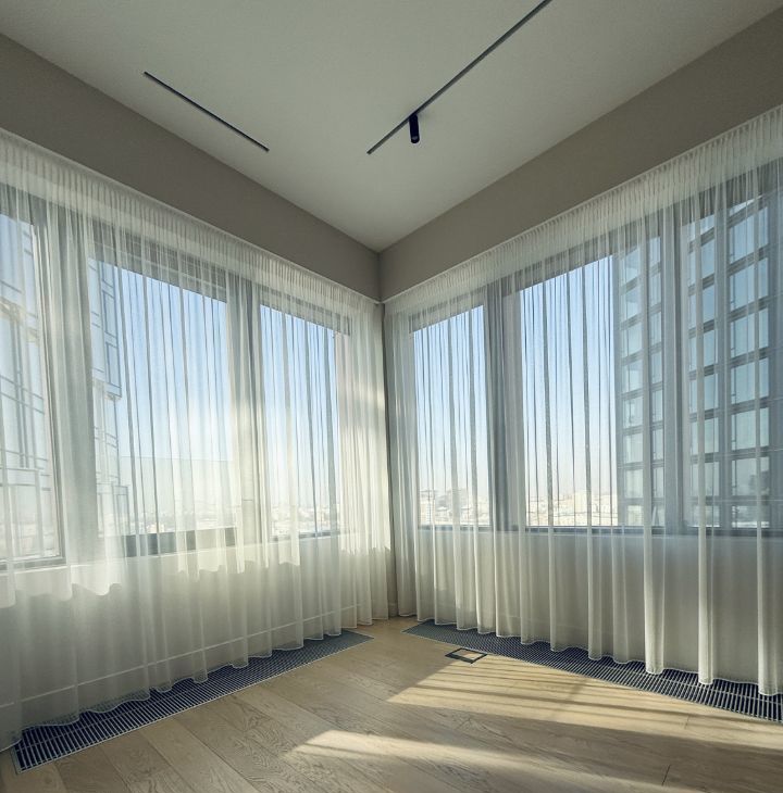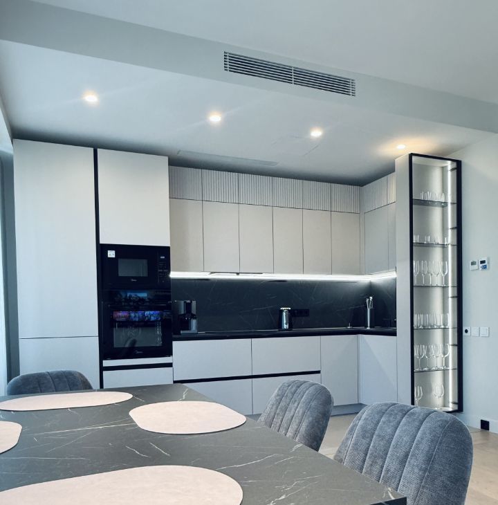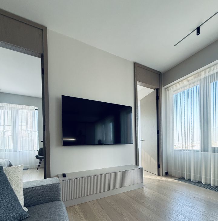 Симфония 34. Дизайнерский ремонт, совершенно новые мебель и бытовая техника, высокие потолки, центральные вентиляция и кондиционирование, две изолированные спальни, одна из них с собственным санузлом, кухня-гостиная, прихожая с системой хранения, гостевой санузел, два совмещенных санузла, один с ванной, другой с душевой, "Умный дом". В квартире никто не жил, ранее не сдавалась.