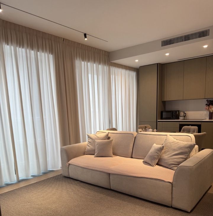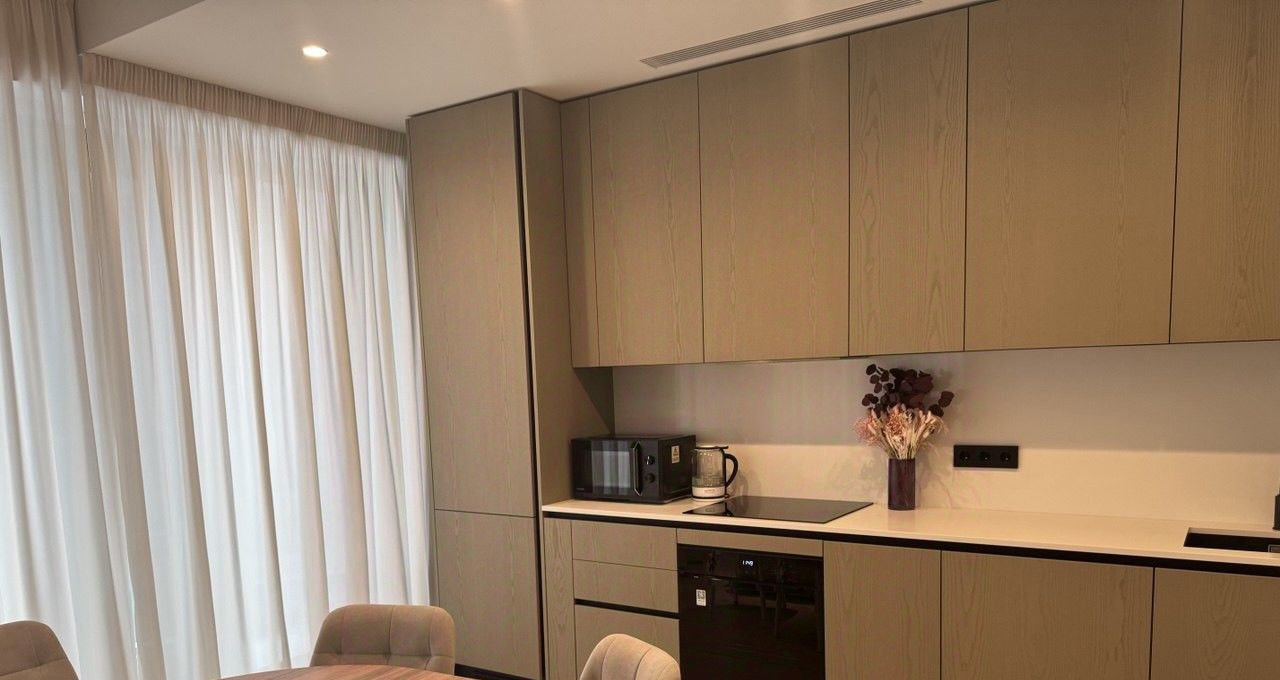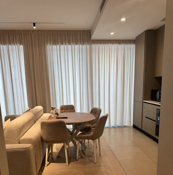 Квартира располагается на 6-ом этаже современного 36-этажного дома 2024 года постройки в башне SIENA. Общая площадь составляет 60,7 квадратных метров, включая просторную кухню-гостиную 24 кв метров. В квартире два смежных санузла. Высокие потолки 3 метра и окна в пол добавляют в помещение ощущение простора и уюта. Окна выходят во двор, что создает тишину, спокойствие и атмосферность.