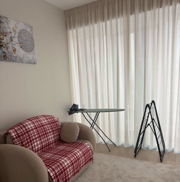 Квартира выполнена в дизайнером стиле, полностью готова к проживанию. В каждой комнате установлена современная мебель, кухонный гарнитур и вся необходимая техника: кондиционер, холодильник, посудомоечная машина, микроволновая печь, стиральная машина с функцией сушки, электрический чайник, утюг, гладильная и сушильная доски, телевизор. Также имеется вся посуда и и постельное белье. Два отдельных смежных санузла, душевая кабина и полноценная ванна.