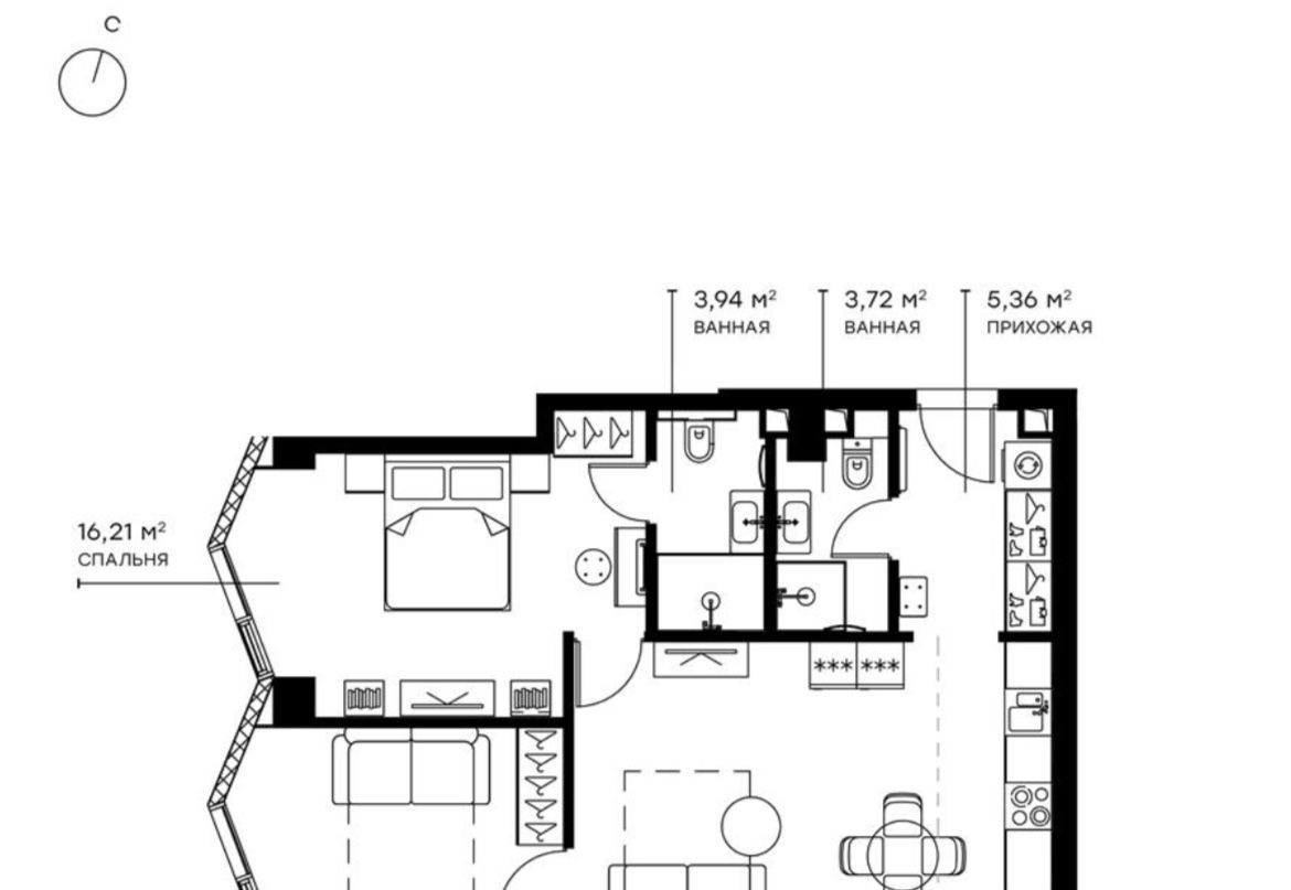 • Отдельная душевая комната и полноценная ванная комната