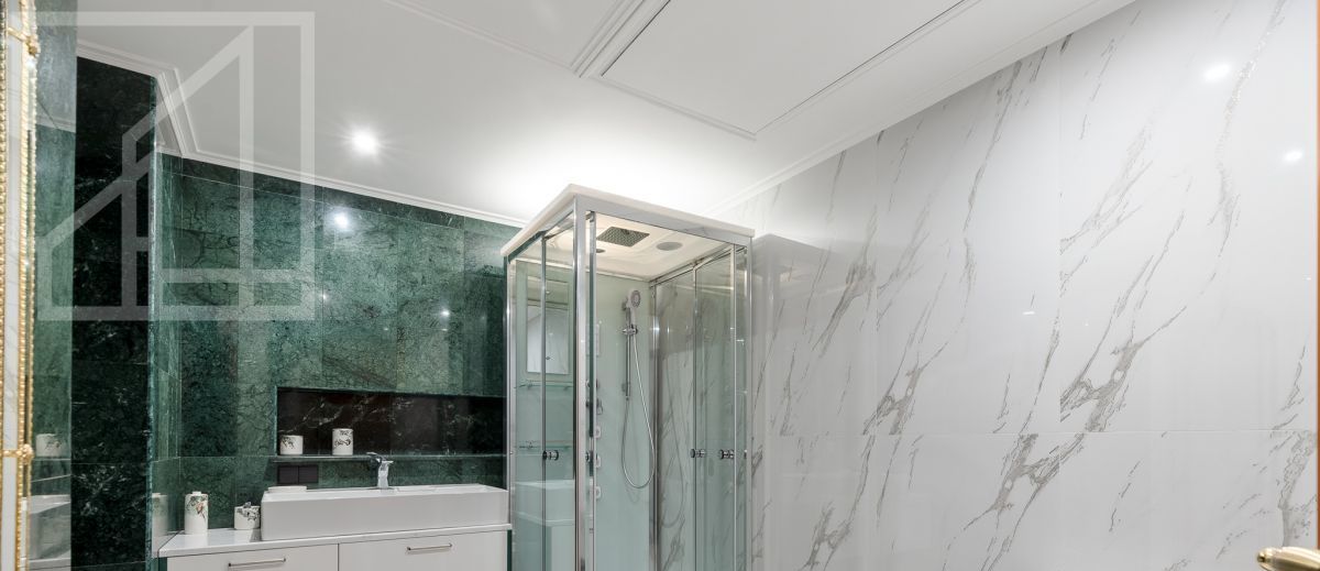 Планировка: гостиная, кухня-столовая с лоджией, две спальни, два санузла, сауна, гардеробная. Потолки 3м. В квартире выполнен ремонт в классическом стиле. Квартира полностью меблирована и оснащена всей необходимой техникой для комфортного проживания.