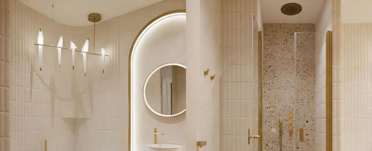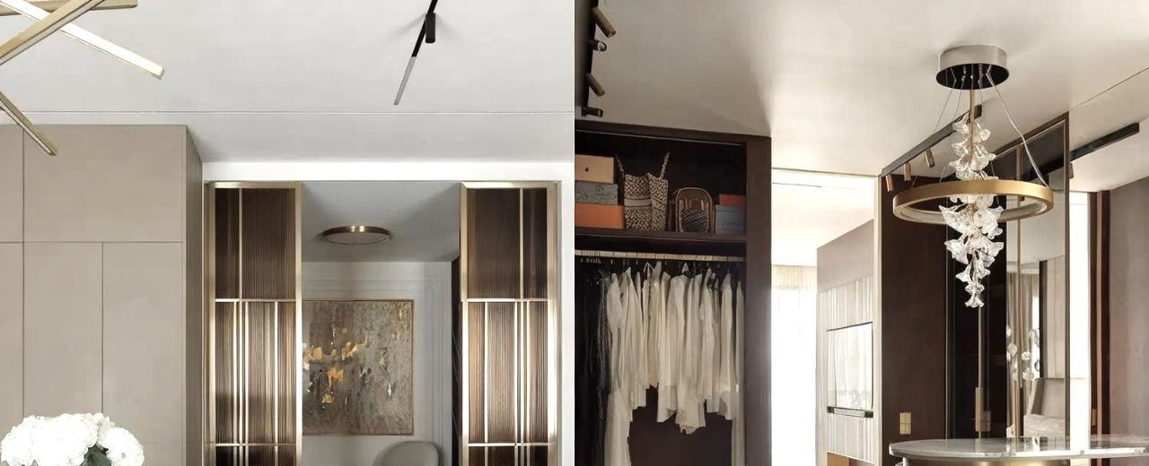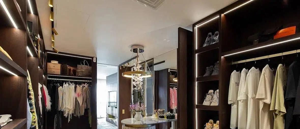 Мастер-спальня выполнена в концепции private suite: просторная комната с панорамными окнами, паркетом, шторами с электроприводом, отдельной зоной для чтения и работы. Большая гардеробная с мраморным островом и дизайнерской люстрой Corbett создаёт ощущение загородного дома. Ванная отделана двумя породами мрамора, оборудована душевой, отдельно стоящей ванной и двойными раковинами, сантехникой Axor и Gessi. Установлена кровать 22 м с матрасом швейцарского бренда Trois Couronnes, акустика Bose, телевизор Sony.