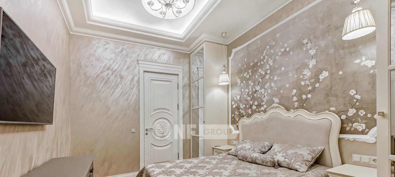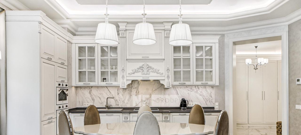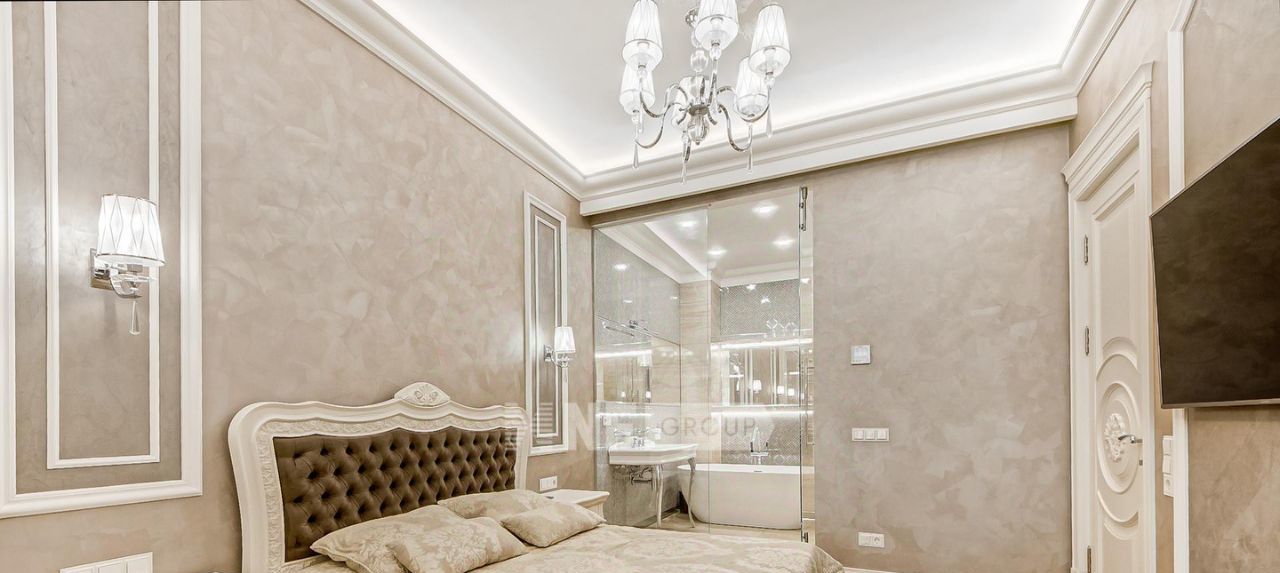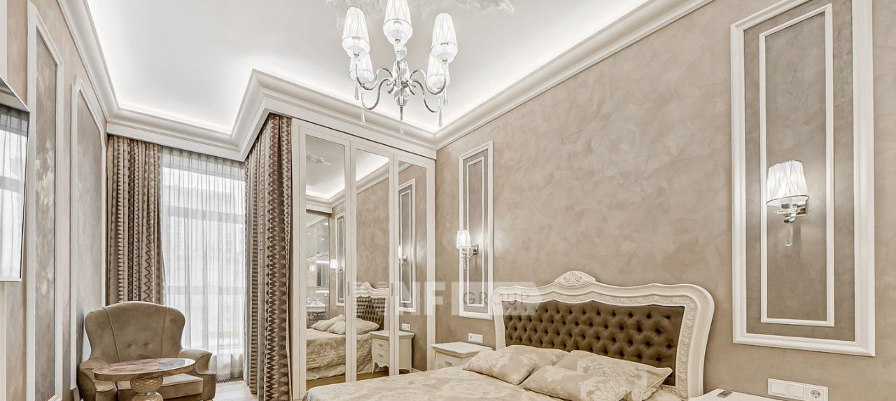 Выполнена отделка в классическом стиле с применением натуральных материалов, квартира меблирована и оснащена качественной бытовой техникой.