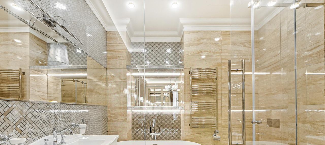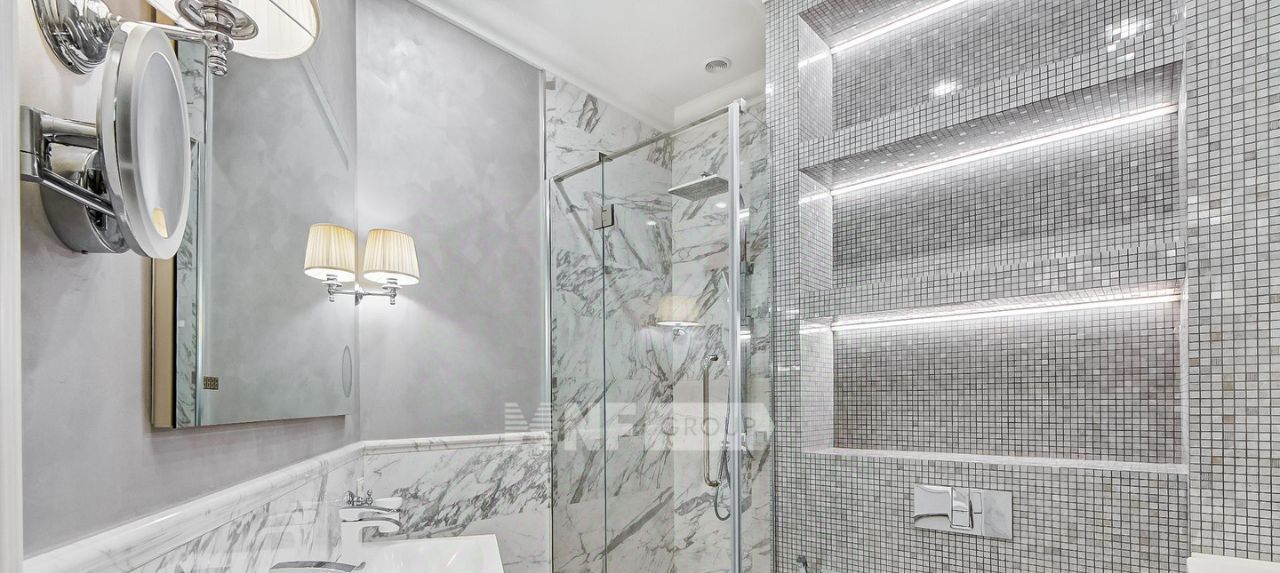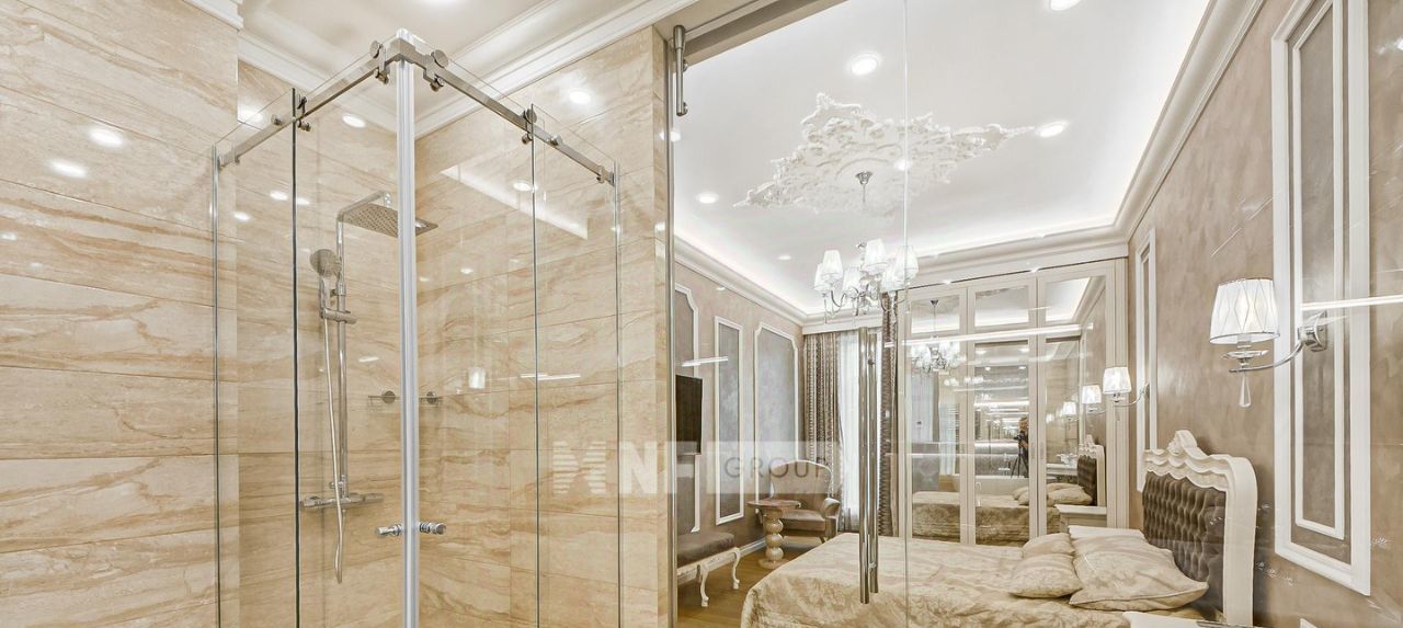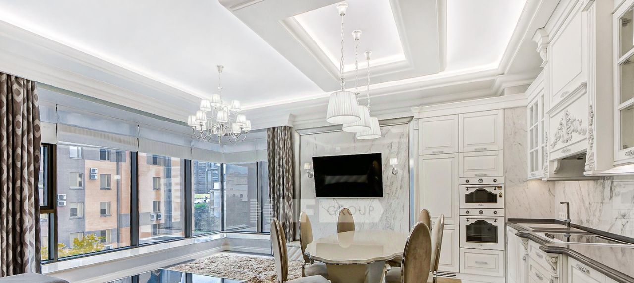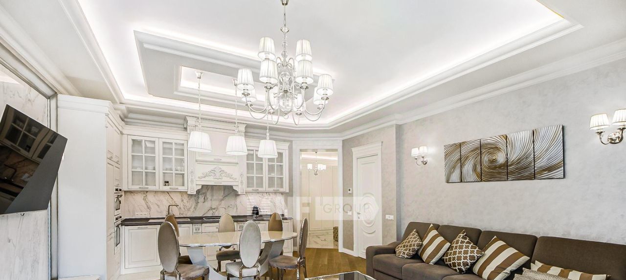 Выполнена отделка в классическом стиле с применением натуральных материалов, квартира меблирована и оснащена качественной бытовой техникой.