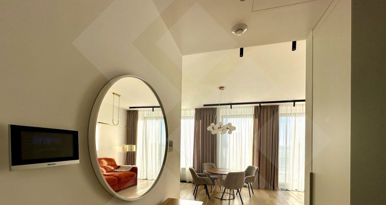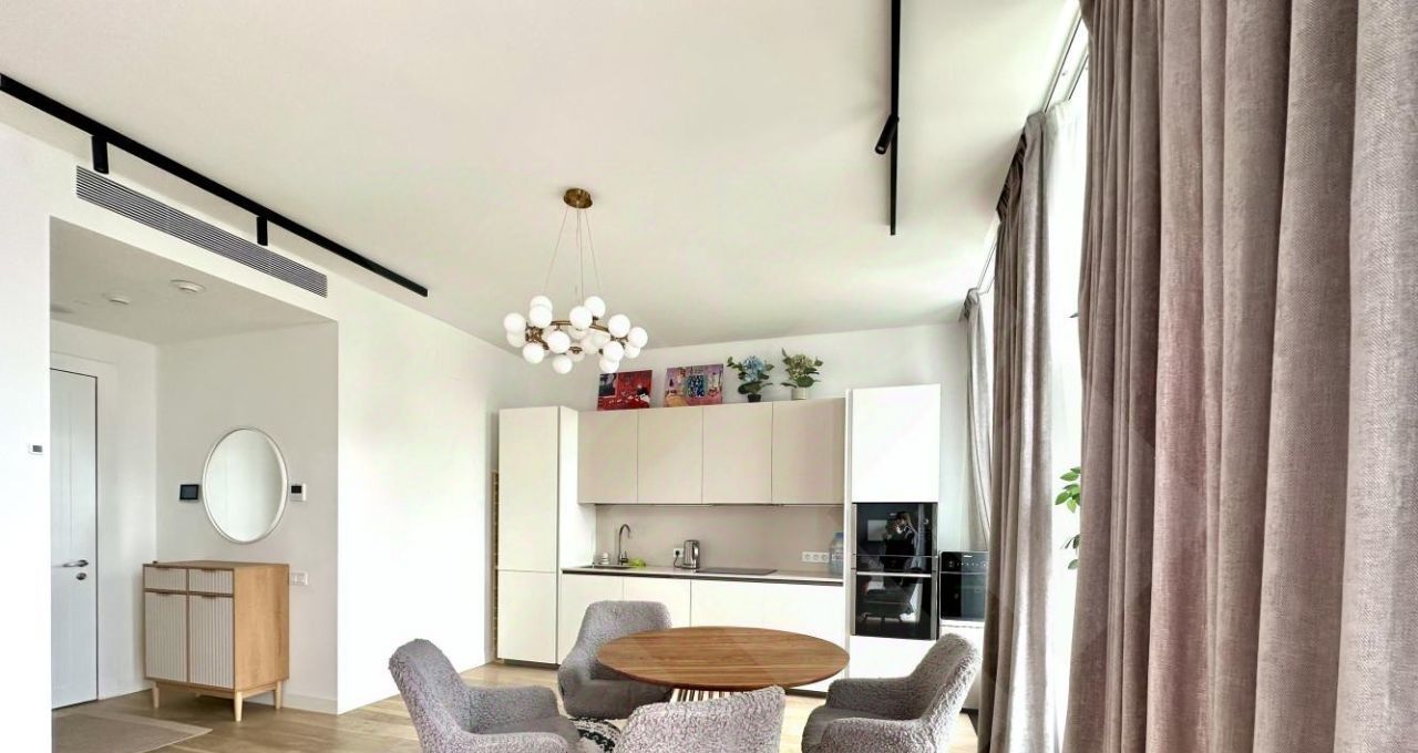 ЗАЕЗД С 25 февраля! Жилой премиум Квартал Lucky. В аренду предлагается ВИДОВАЯ евро 3х комнатная квартира с большой ТЕРРАСОЙ. Окна выходят на запад. Угловая планировка квартиры включает в себя кухню-столовую-гостиную 24м с выходом на террасу, 1 мастер спальня со своей гардеробной и санузлом(душевая кабина), 1 комната свободного назначения, санузел с ванной, прихожая с вместительным шкафом. Техника NEFF и сантехника Villeroy&Boch премиальной линейки, в наличии есть всё необходимое для комфортного проживания. Система кондиционирования климат-контроль. Умный дом.