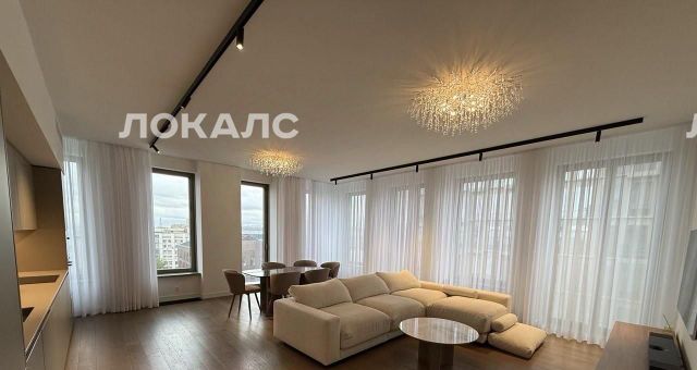 В долгосрочную аренду предлагается семейная видовая квартира с новой дизайнерской отделкой в квартале Lucky на Пресне. Планировка : кухня гостиная с итальянской кухней, мастер спальня с гардеробной и санузлом, детская спальня и гостевой санузел , постирочная. Сантехника, ванны и душевые Villeroy & Boch. Умный дом, приточная вентиляция, канальное центральное кондиционирование. Полностью меблирована. Из гостиной (8 окон) открывается вид на Москву-Сити и высотку на Кудринской набережной.При отделке квартиры использовались дорогие материалы: паркетная доска из тонированного дуба для пола, плитка Терраццо для ванных комнатах, кухонный комплект выполнен компанией Molteni Group.