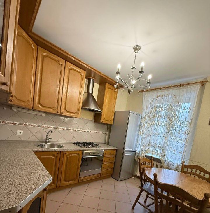Мебель из настоящего дуба на кухне и в комнатах создаёт атмосферу уюта и домашнего тепла. В спальне удобная двухспальная кровать с ортопедическим матрасом. Большой встроенный шкаф в прихожей и спальнах вместят все ваши вещи, найдется место для всего!