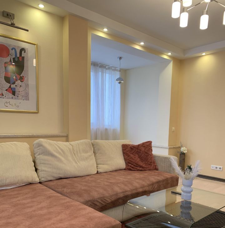 Просторная, стильная 3-х комнатная квартира, после качественного ремонта (делали для себя), с оборудованной гардеробной комнатой. Все комнаты изолированные (23м2-16м2-15м2). Для комфортного проживания имеется необходимая жилая мебель: в гостиной - угловой диван, модульный гарнитур, журнальный стол; в спальне - двуспальная кровать (180х200см), комод, прикроватные тумбы; в детской - диван, шкаф, письменный стол; в холле - большой, вместительный шкаф купе. На кухне установлен кухонный гарнитур, со встроенной бытовой техникой, в том числе посудомоечной машиной. В квартире имеются два сан/узла. Большая застекленная лоджия. Панорамный вид из окна. Развитая инфраструктура района - ТЦ Горбушка, продуктовый рынок, много объектов досуга, школы, д/с, в пешей доступности, замечательный парк Фили. Рассматривают платёжеспособных нанимателей, можно с ребёнком.