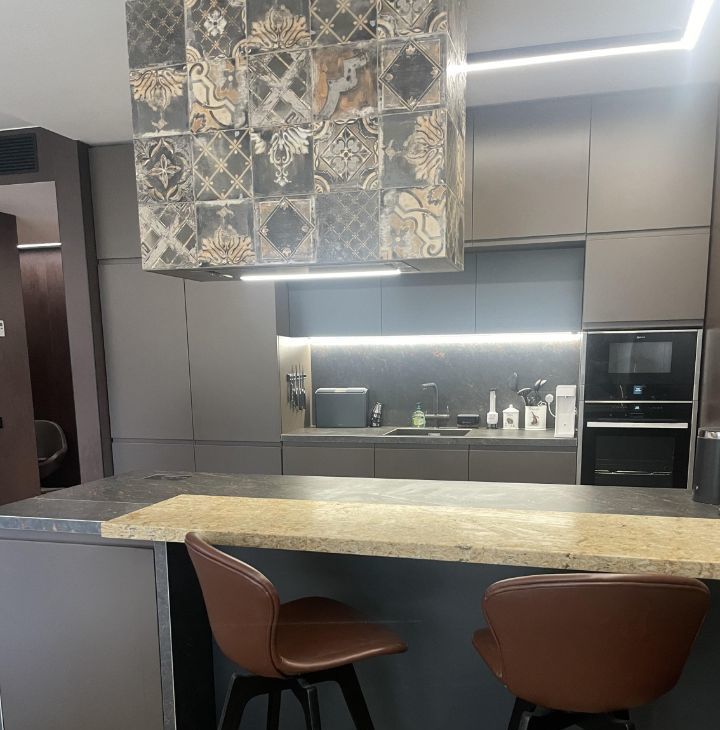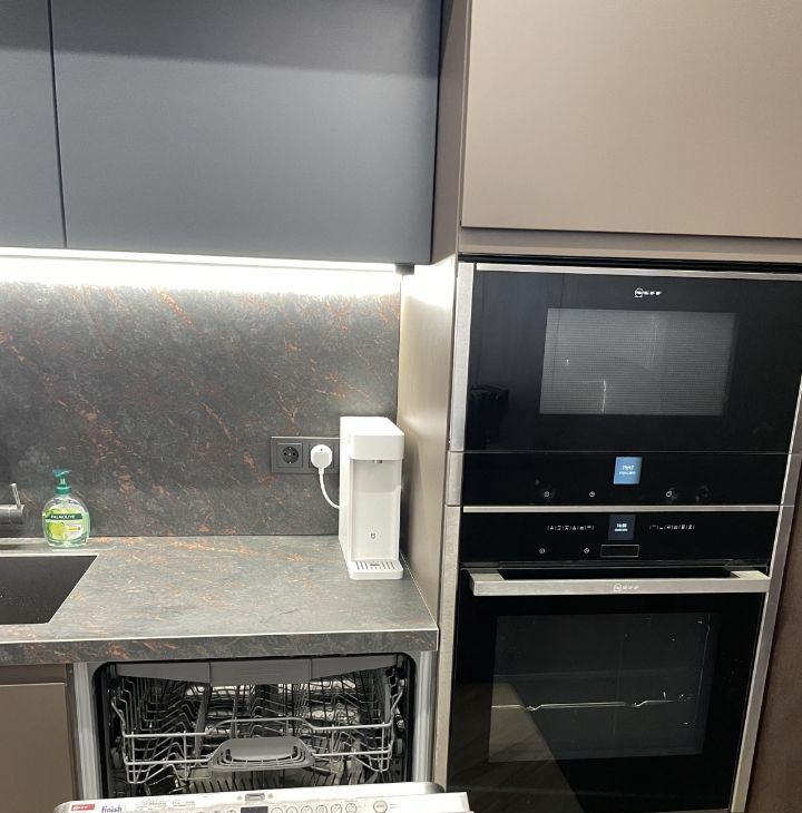 Установлена техника: холодильник Side-by-Side Liebherr, кондиционеры, стиральная машина Elecrolux , телевизор Samsung , посудомоечная машина Neff, духовой шкаф и микроволновка Neff , варочная панель Ligron , очистка питьевой воды.